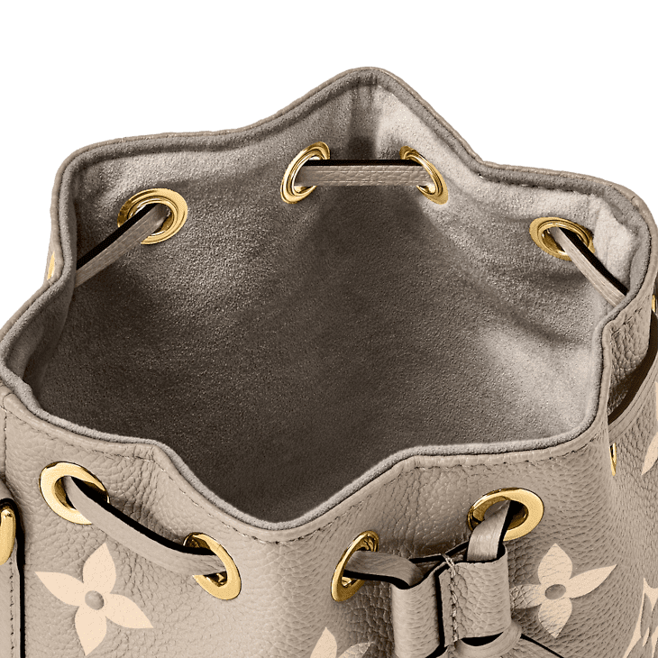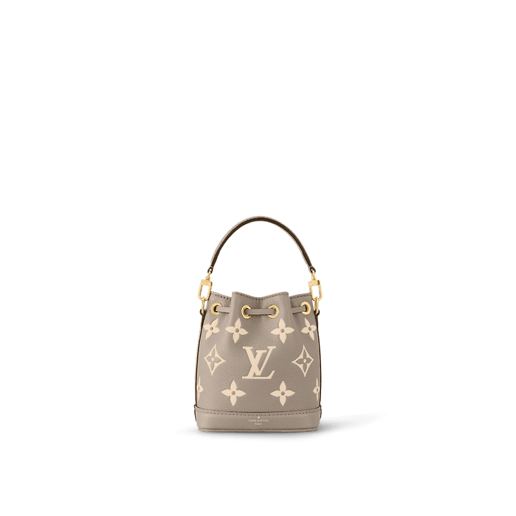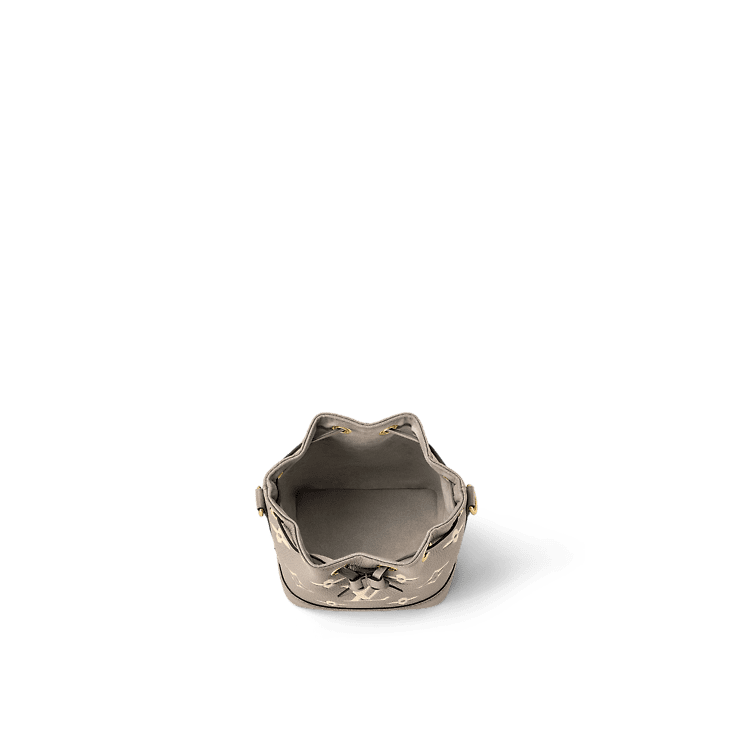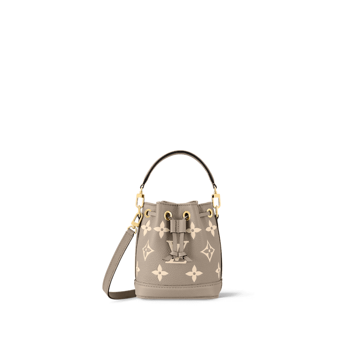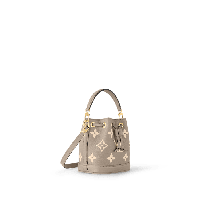 This bicolor version of the Nano Noé is crafted from supple Monogram Empreinte leather, embossed with the Monogram pattern. This miniature replica of the iconic Noé bag is a stylish way to carry everyday essentials. In addition to its practical drawstring closure, it features a removable handle and a removable, adjustable shoulder strap for different carry options.