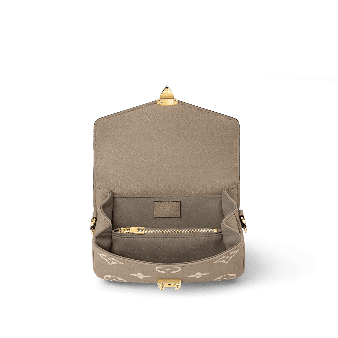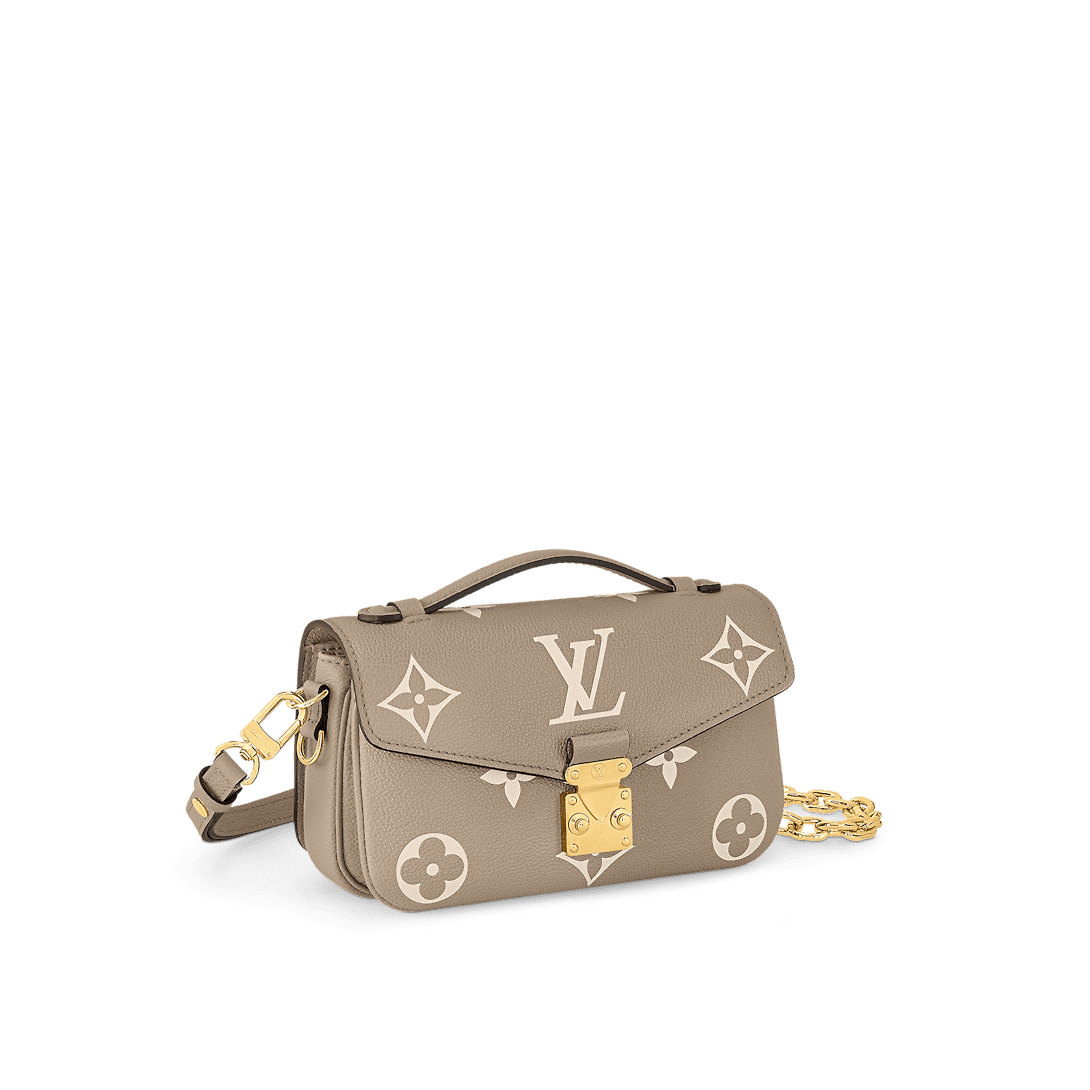 Crafted from Monogram Empreinte leather, with its embossed Monogram pattern, the Pochette Metis East West handbag blends classic Louis Vuitton design codes with contemporary details. The S-lock and top handle evoke the House’s historic trunks while the compact proportions and removable chain, perfect for short shoulder carry, bring an up-to-the minute feel.
