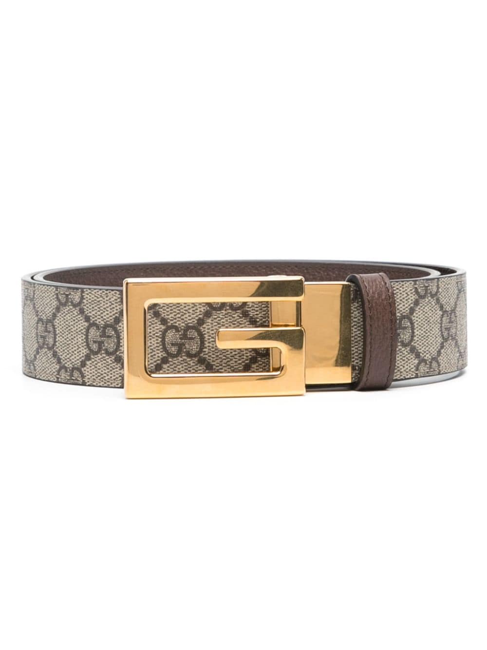 beige/brown calf leather reversible signature Interlocking G logo logo-buckle fastening punch-hole detailing adjustable fit