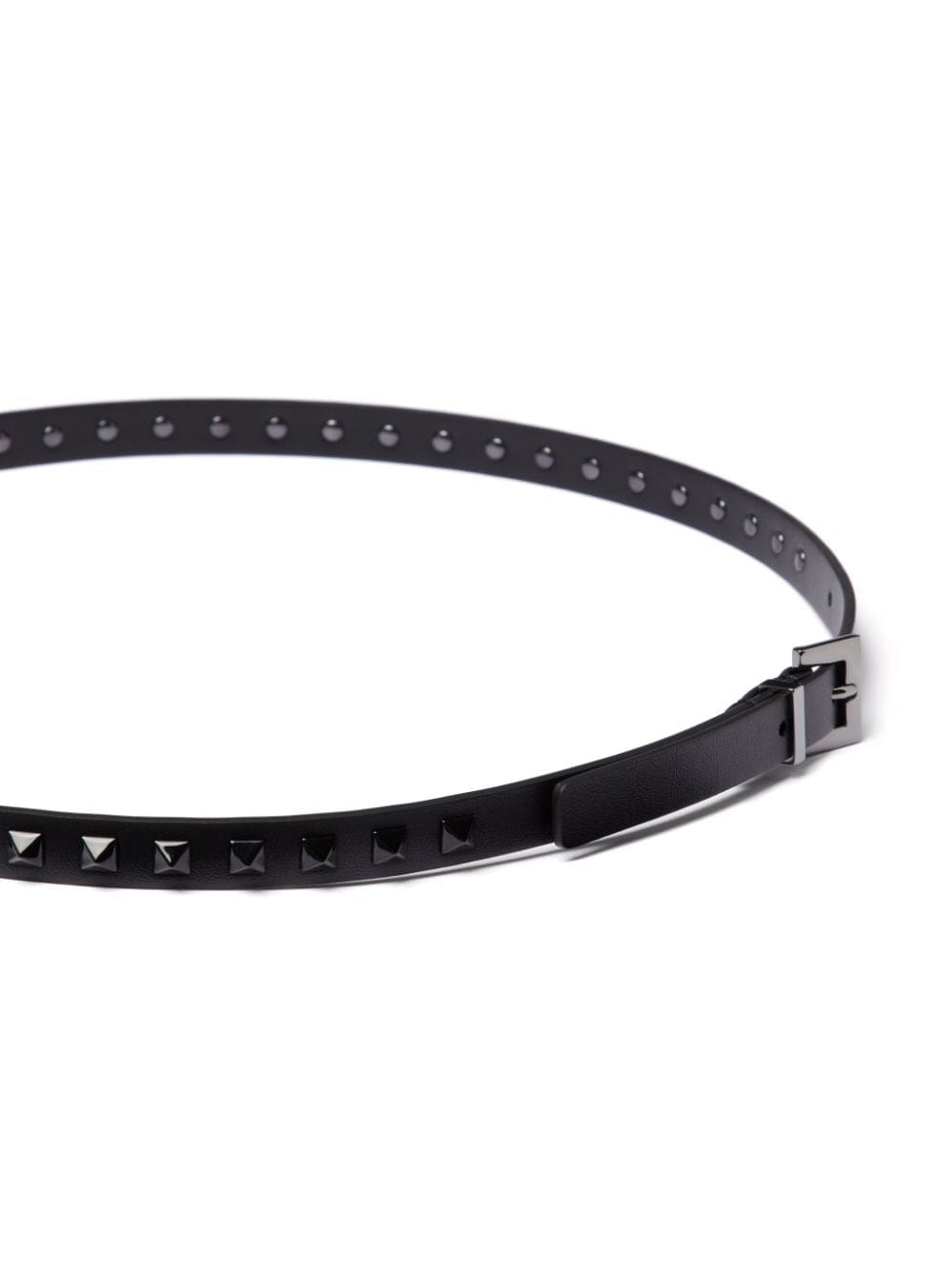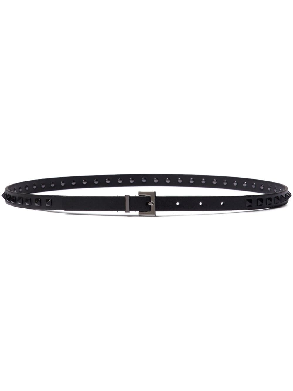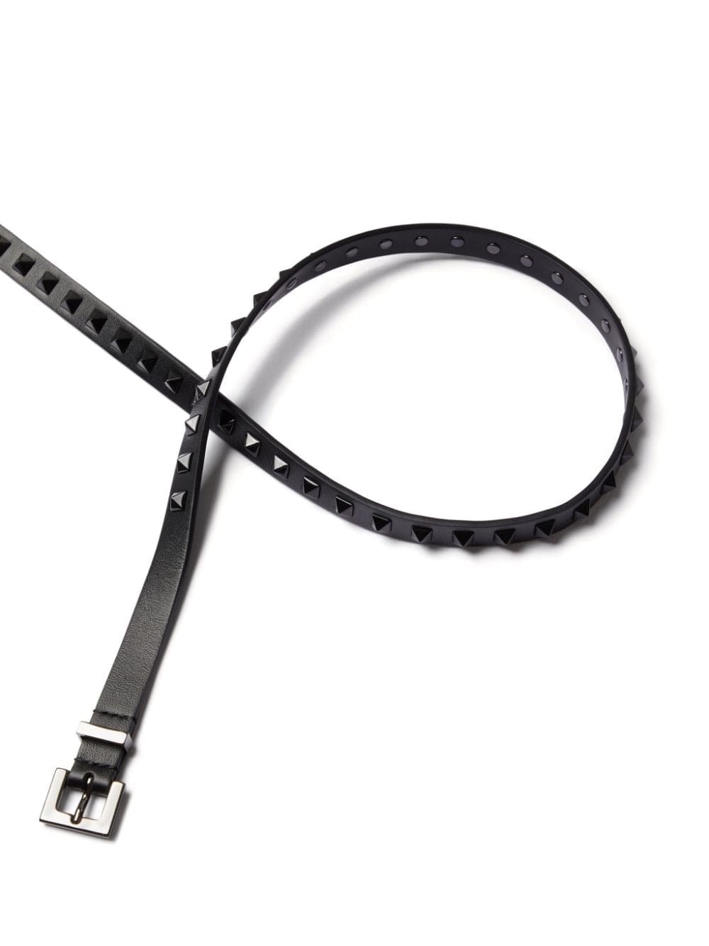 The hallmark Rockstud embellishments take centre stage on this black leather belt from Valentino Garavani. First introduced in 2010, the motif adorns this accessory in a gunmetal tone.