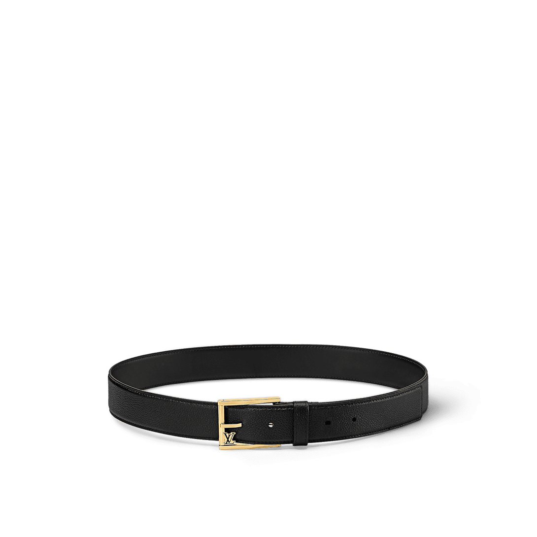 This edition of the Saint Germain belt features a sleek, elegant construction and the smooth black leather strap showcases a new buckle design. The LV Initials at the lower corner are finely crafted from gold-tone metal and finished with black enamel for a modern touch. A stylish accessory, it will complement both business attire and smart-casual outfits.