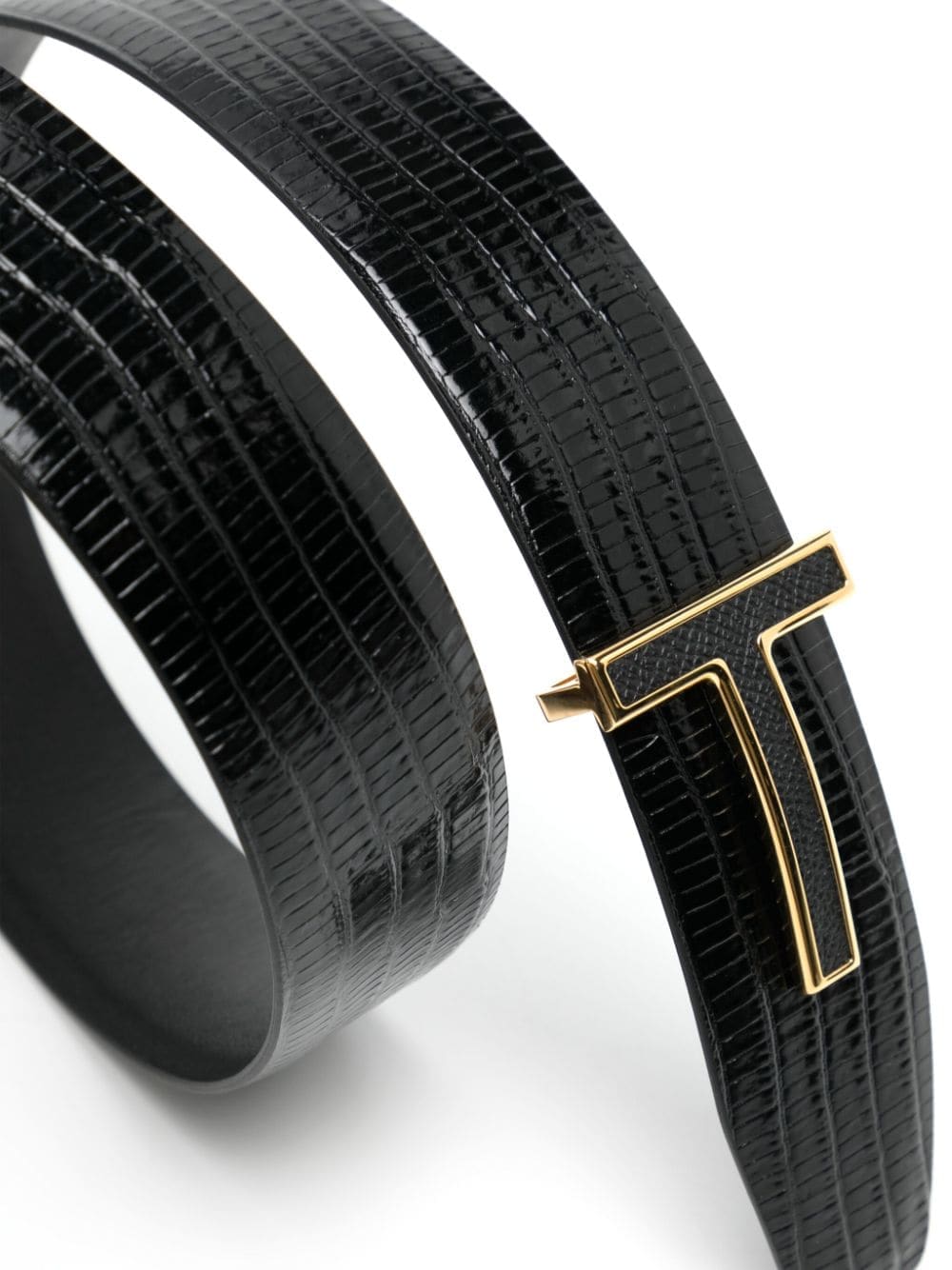 A testament to TOM FORD's craftsmanship and leatherwork, the T Ridge belt is made from supple leather embossed in Italy to a crocodile skin texture. An iconic T-shaped buckle lends a recognisable flair.