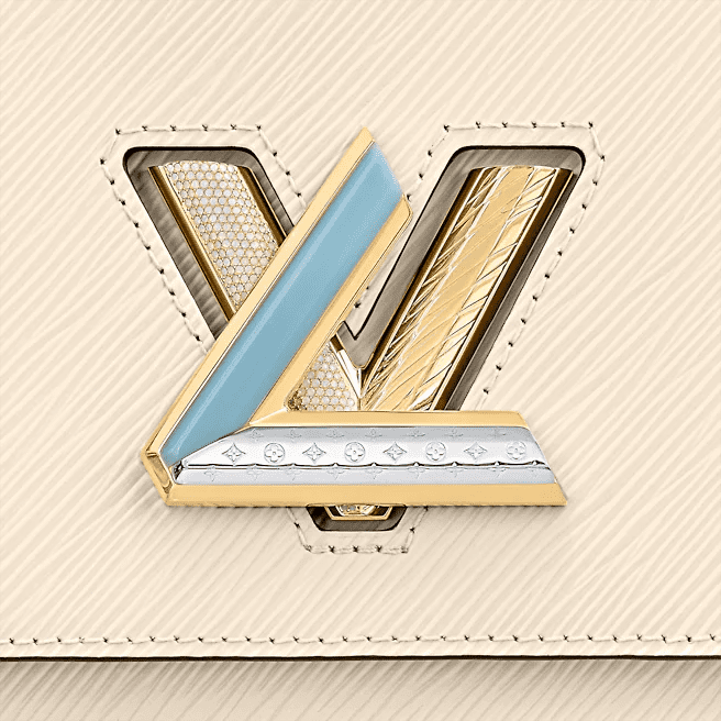 - Gold-color hardware with strass and enamel on the lock