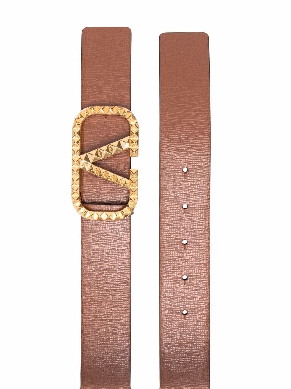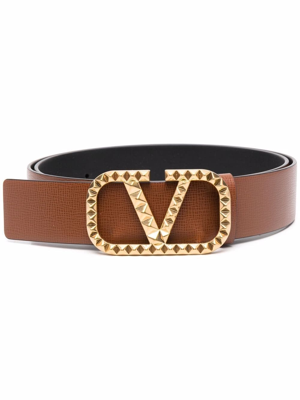 Valentino Garavani's logo is brought back season after season with distinct finishes. In this brown leather belt, the signature comes on the front in a gold-tone.