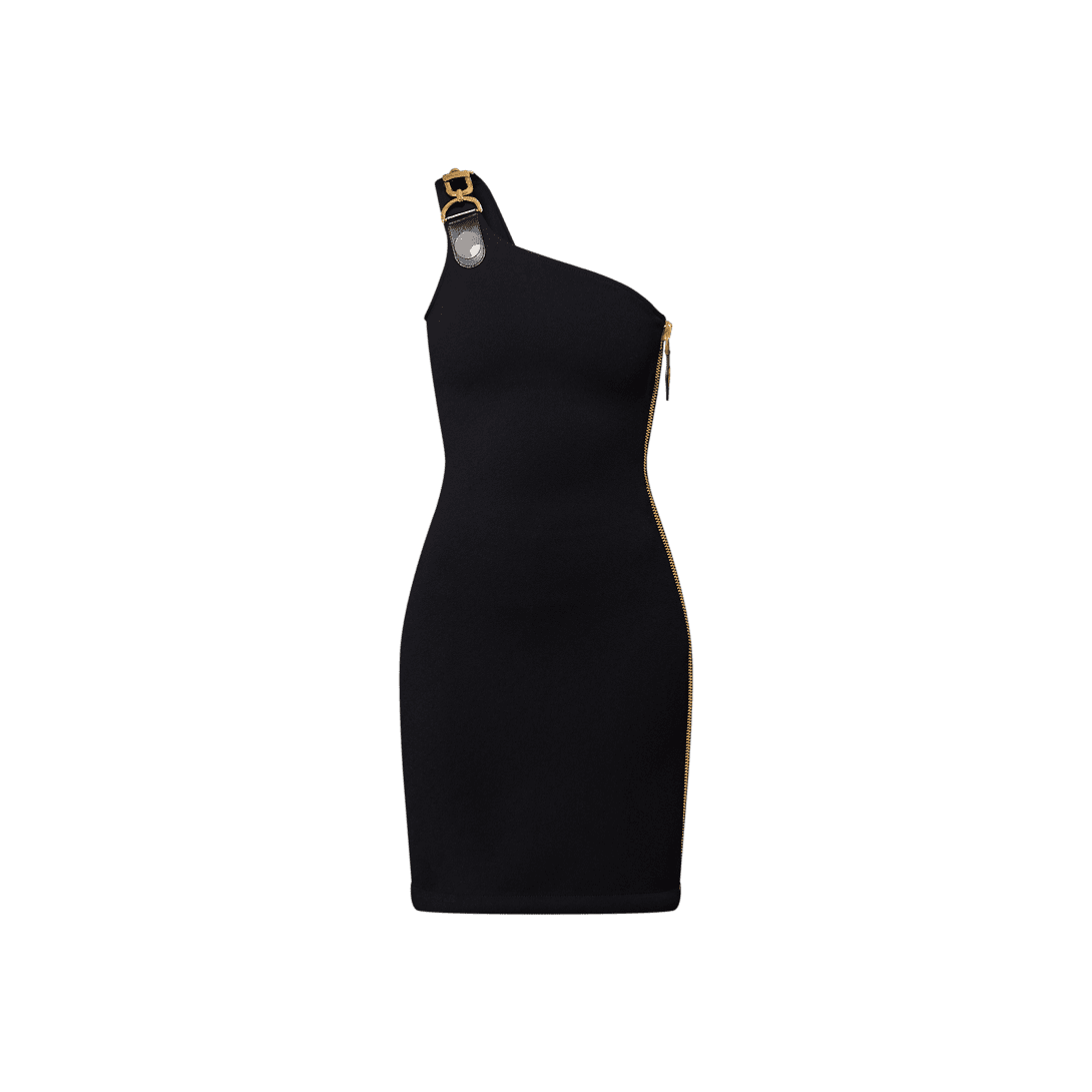 This sleek dress is elevated with scaled-up detailing for a chic statement look. The asymmetrical one-shoulder silhouette skims the figure in flexible viscose-blend jersey for a comfortable, feminine fit. The strap is embellished with this season’s oversized buckle detail, while the side is highlighted with an XXL zipper.