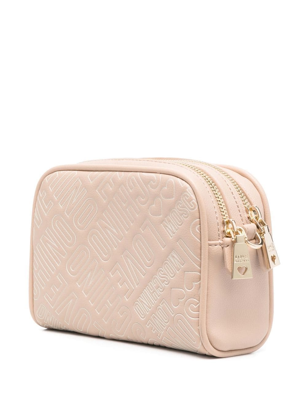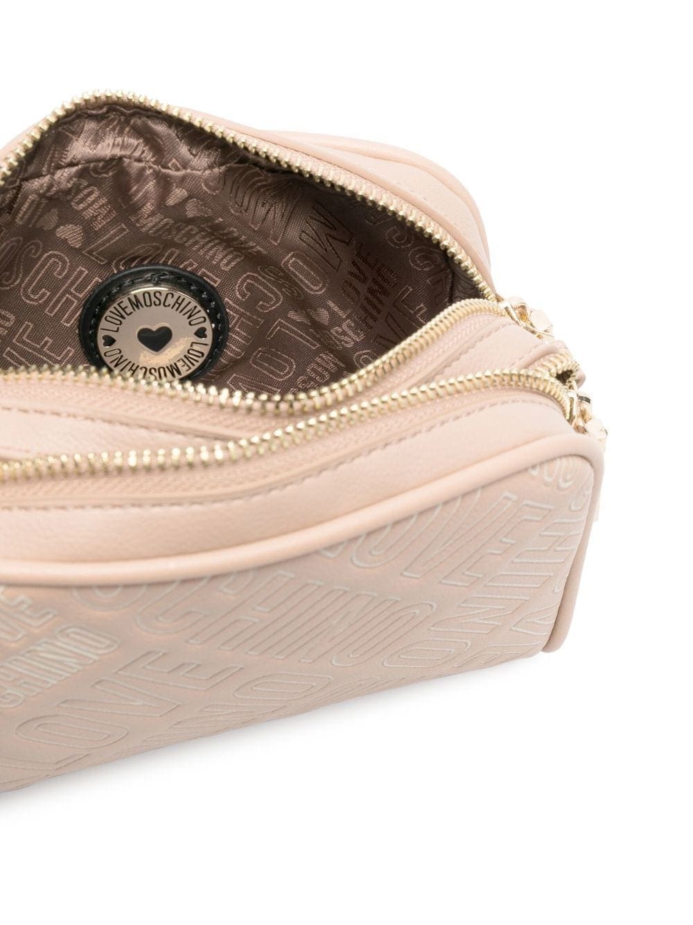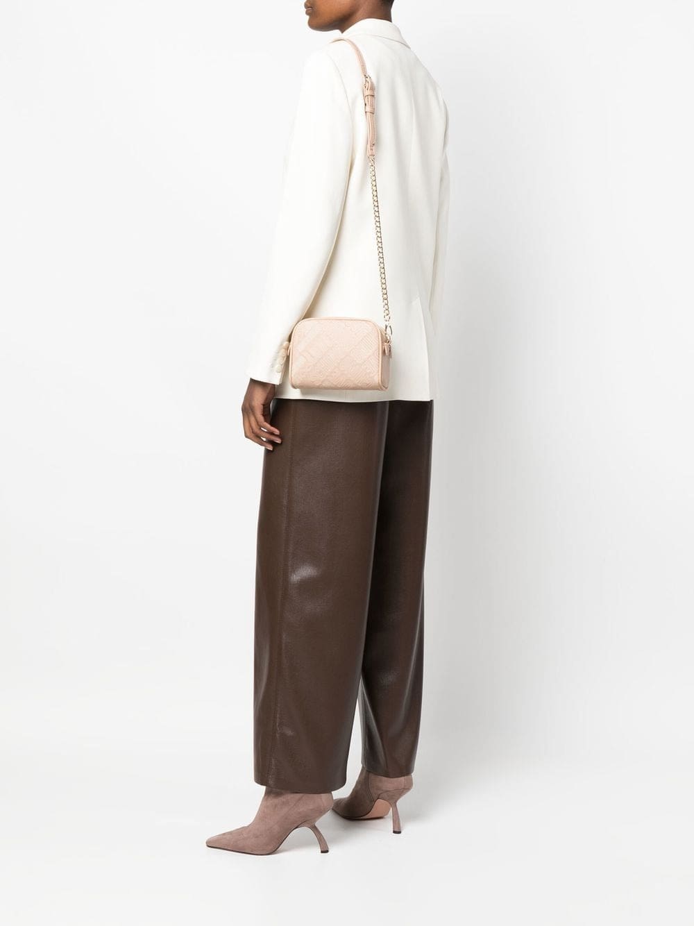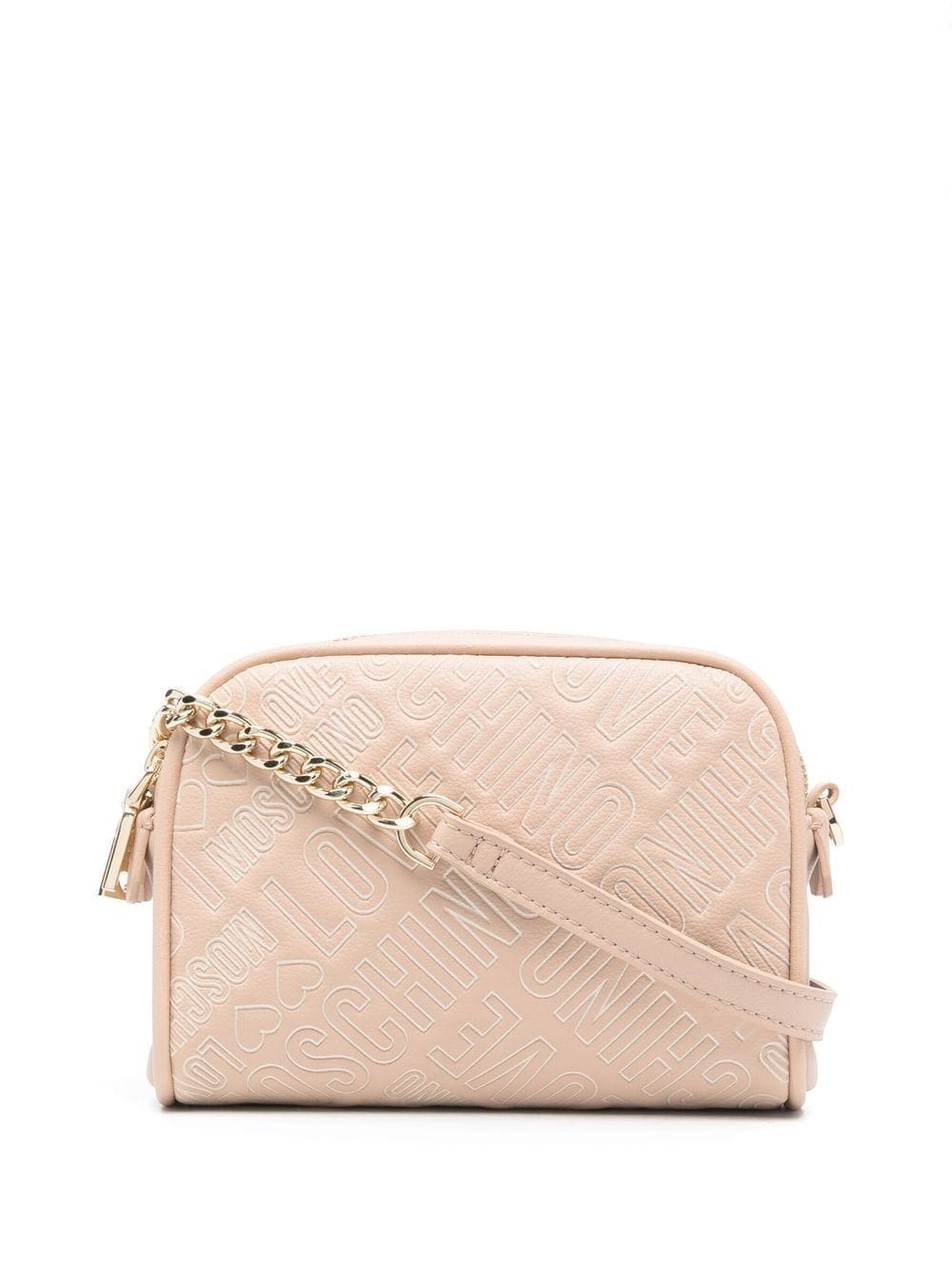 light brown all-over debossed logo print gold-tone hardware two zip-fastening compartments leather and chain-link shoulder strap logo-print lining internal logo plaque