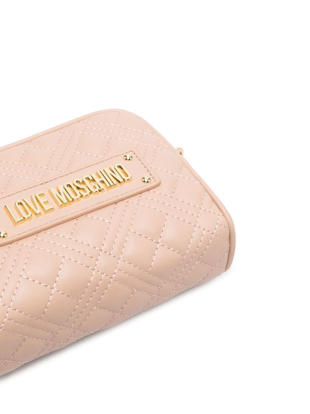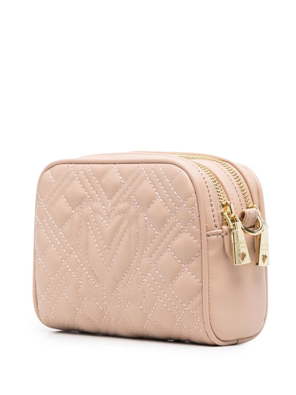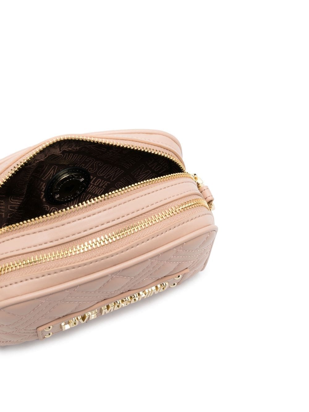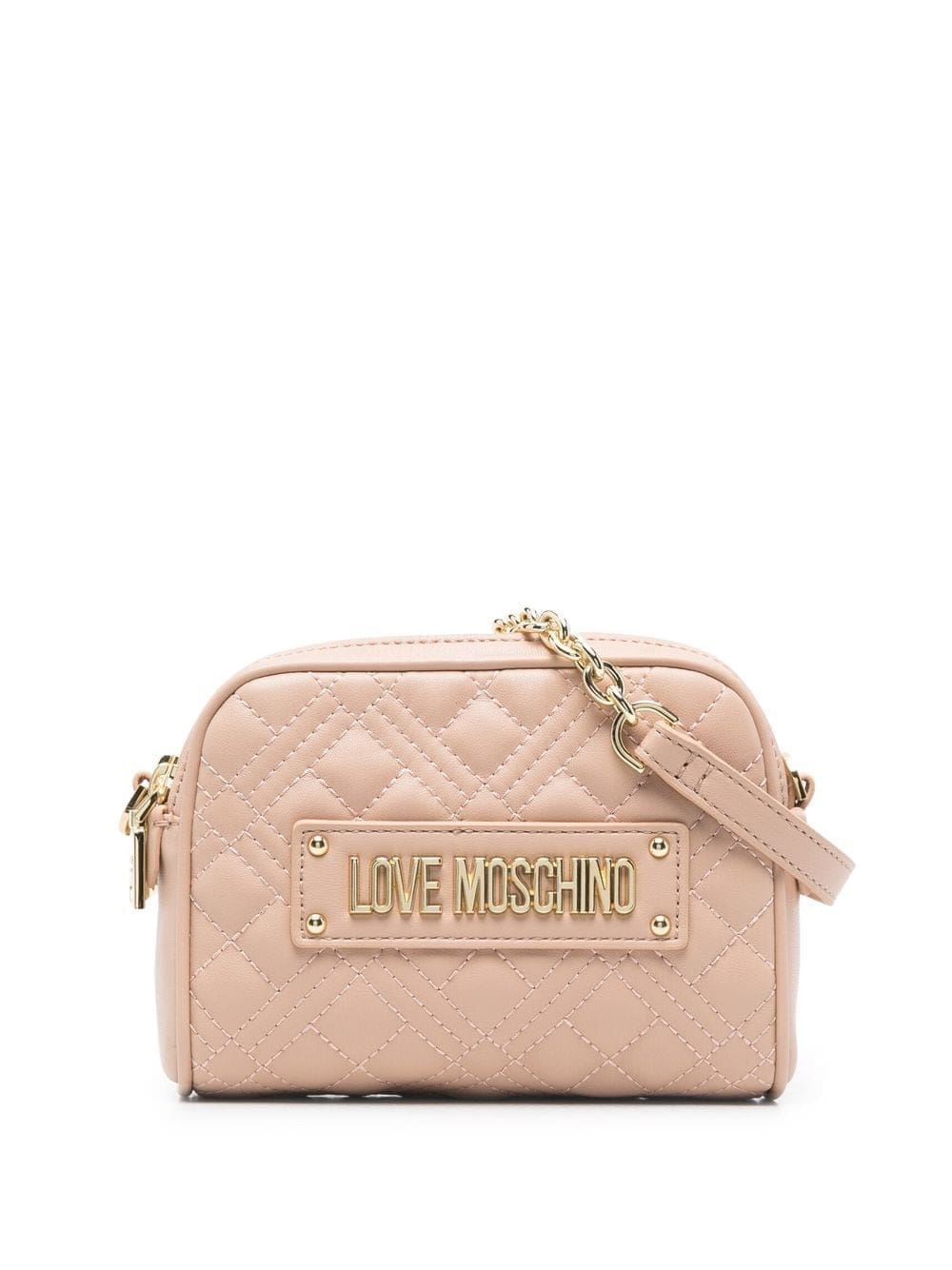 blush beige gold-tone hardware diamond-quilted detailing two zip-fastening compartments chain-link shoulder strap logo-print lining