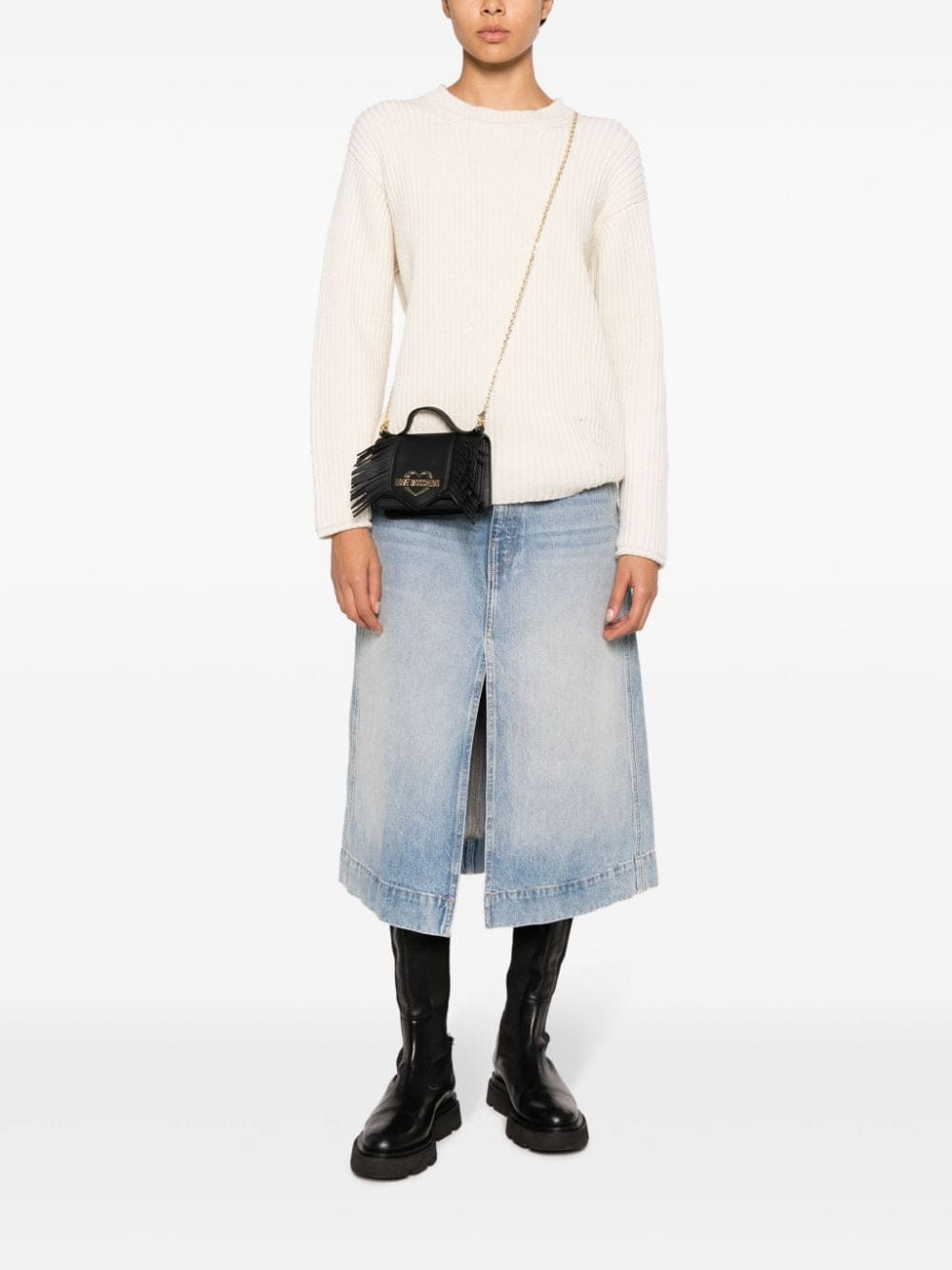 Love Moschino fringed logo-plaque crossbody bag