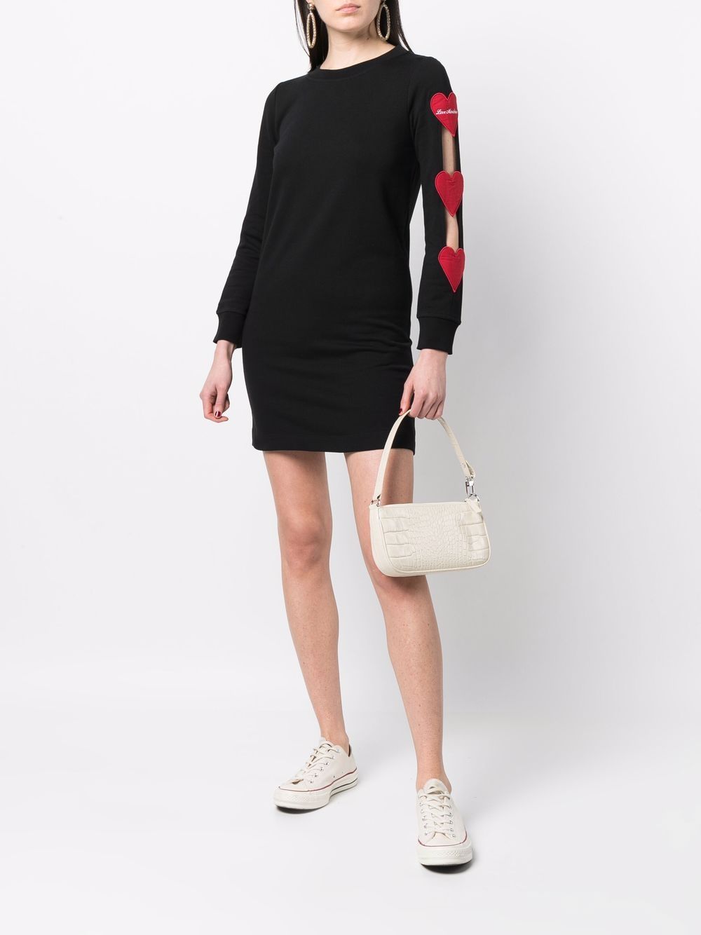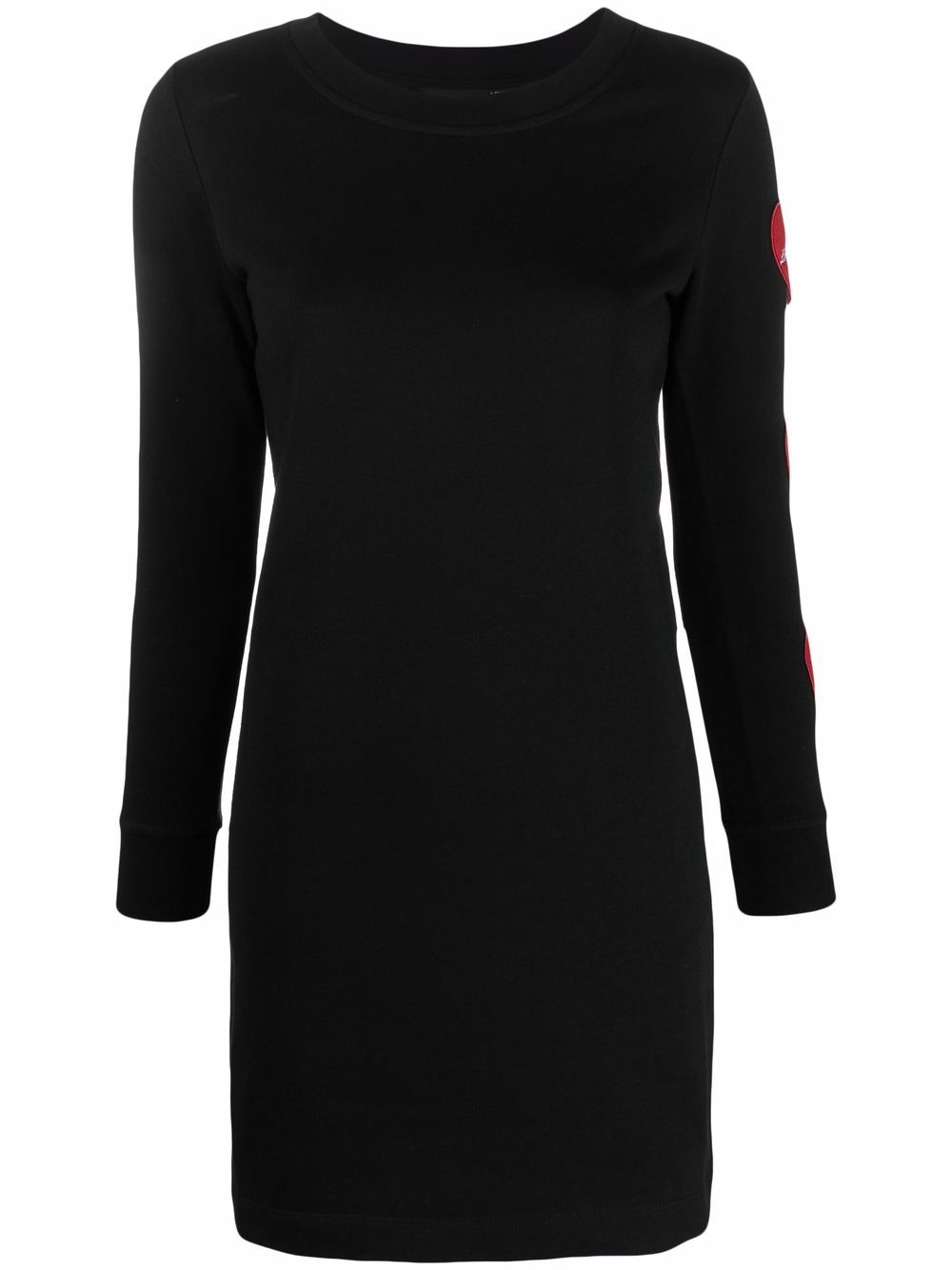 jet-black/cherry-red cotton heart motif crew neck long sleeves ribbed hem