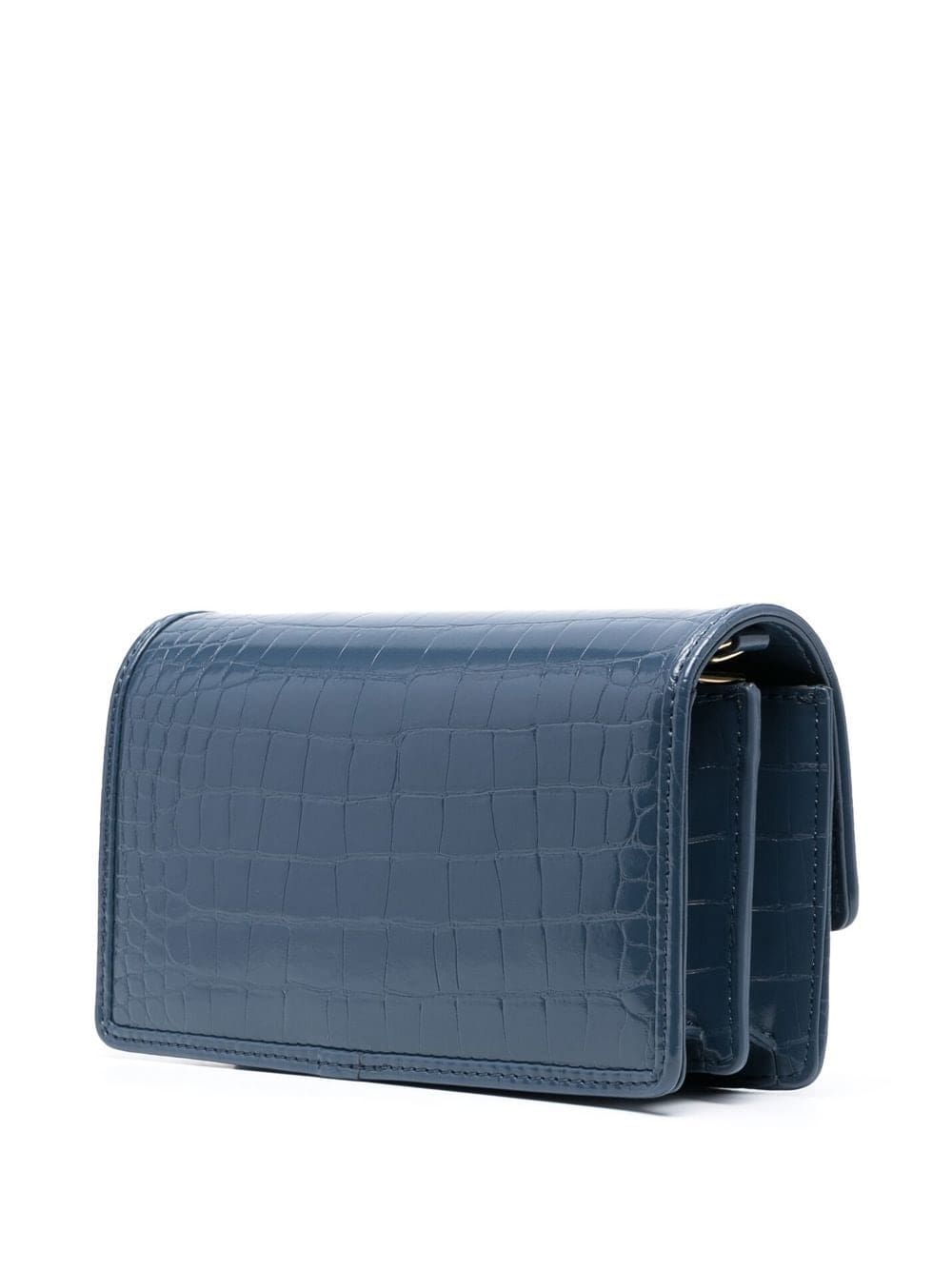 cornflower blue embossed crocodile effect gold-tone hardware gold-tone logo lettering foldover top with magnetic fastening partitioned compartment internal zip-fastening pocket internal card slots