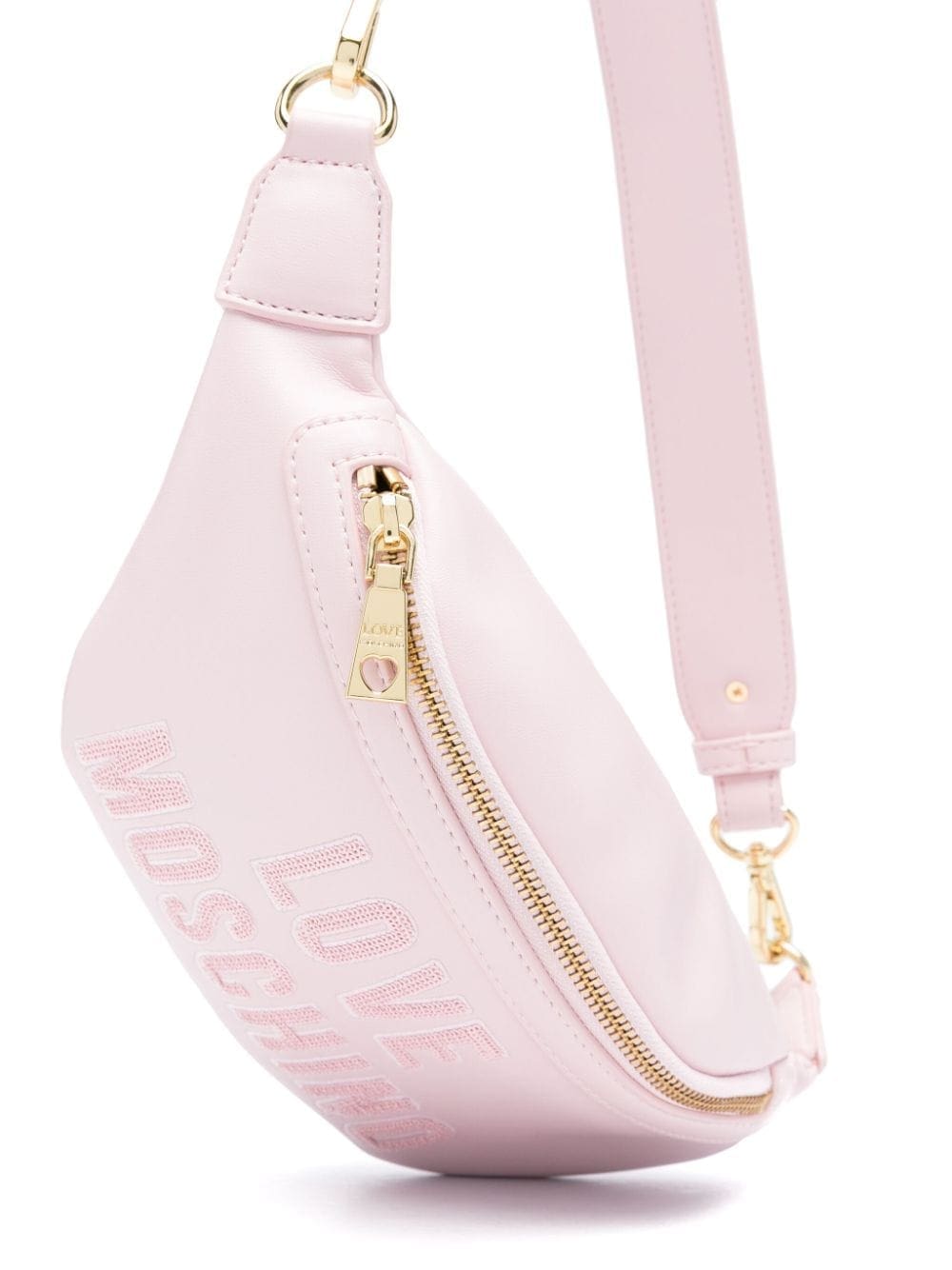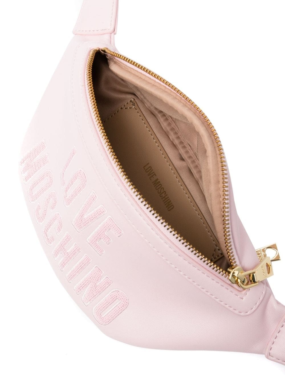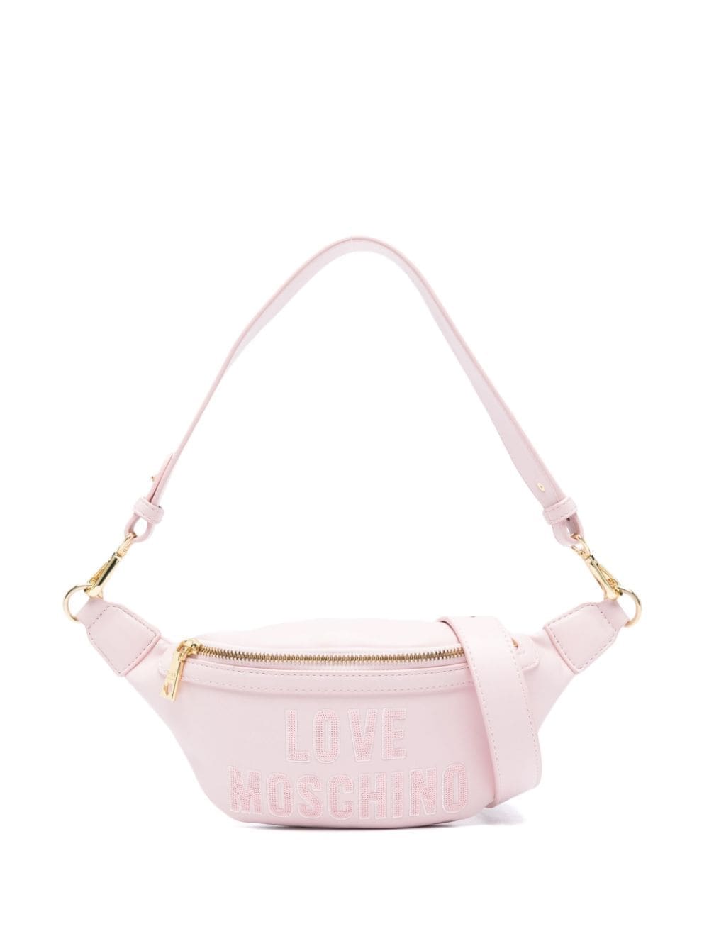 Never one to shy away from bold branding, Love Moshchino emblazons the front of this pink belt bag with a sequinned logo. It’s crafted from faux leather with a waist belt and shoulder strap for versatile carrying.
