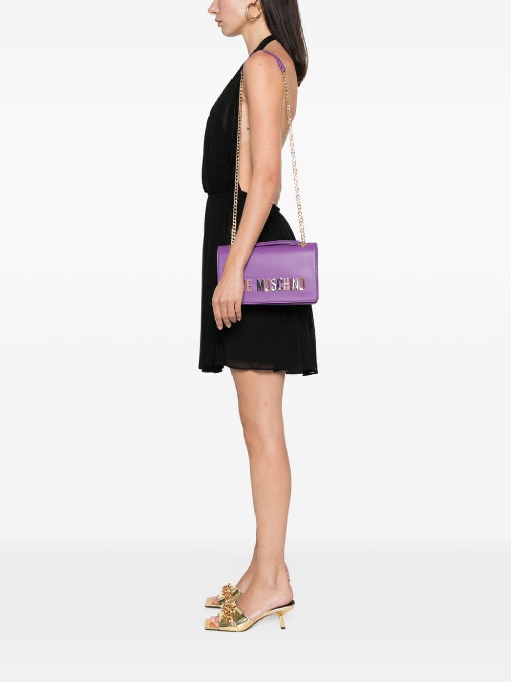 • adjustable leather and chain-link shoulder strap