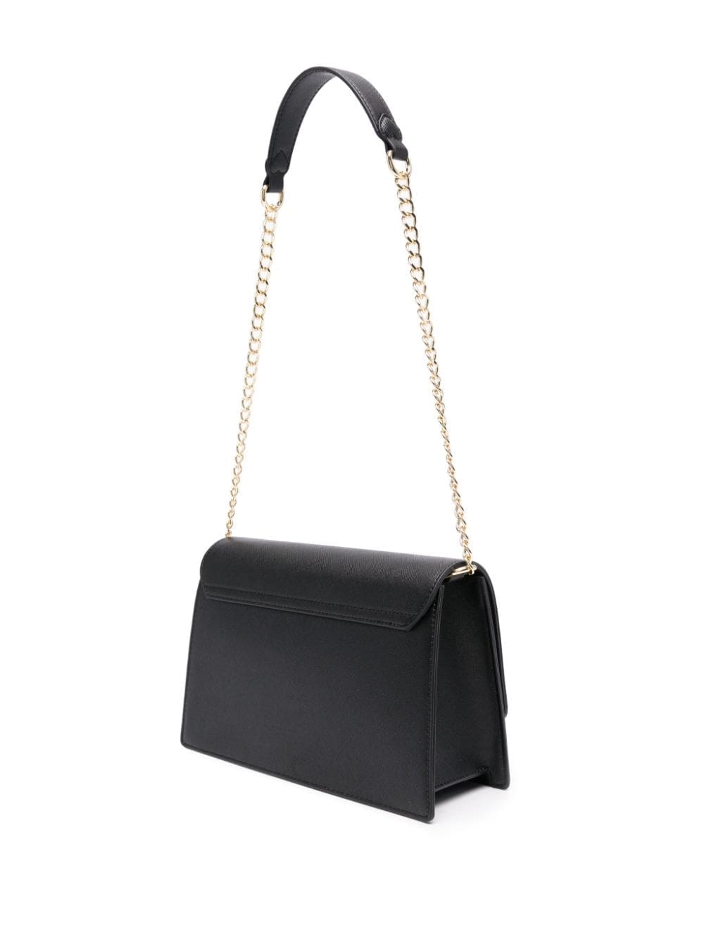 - faux-leather and chain-link shoulder strap