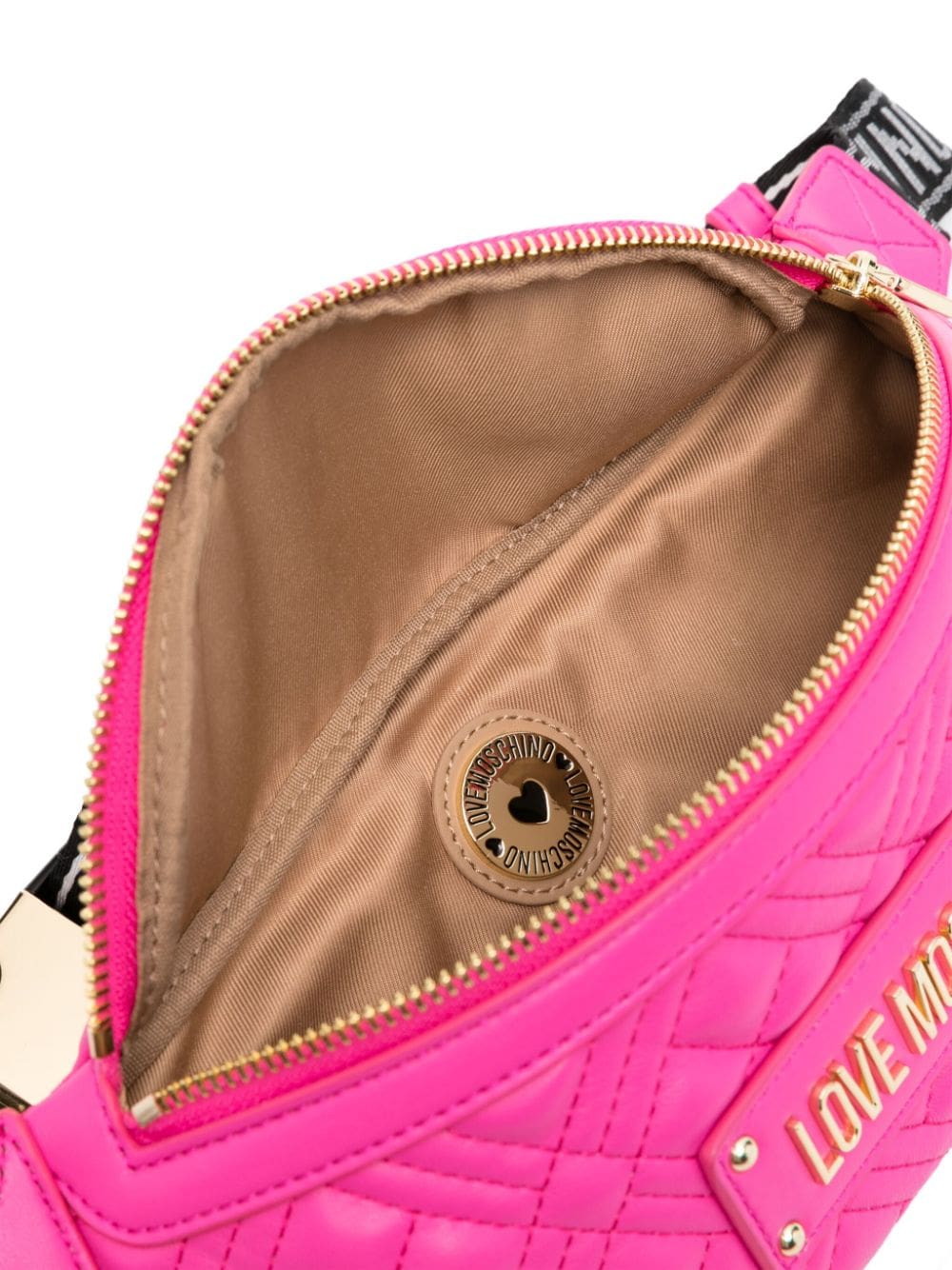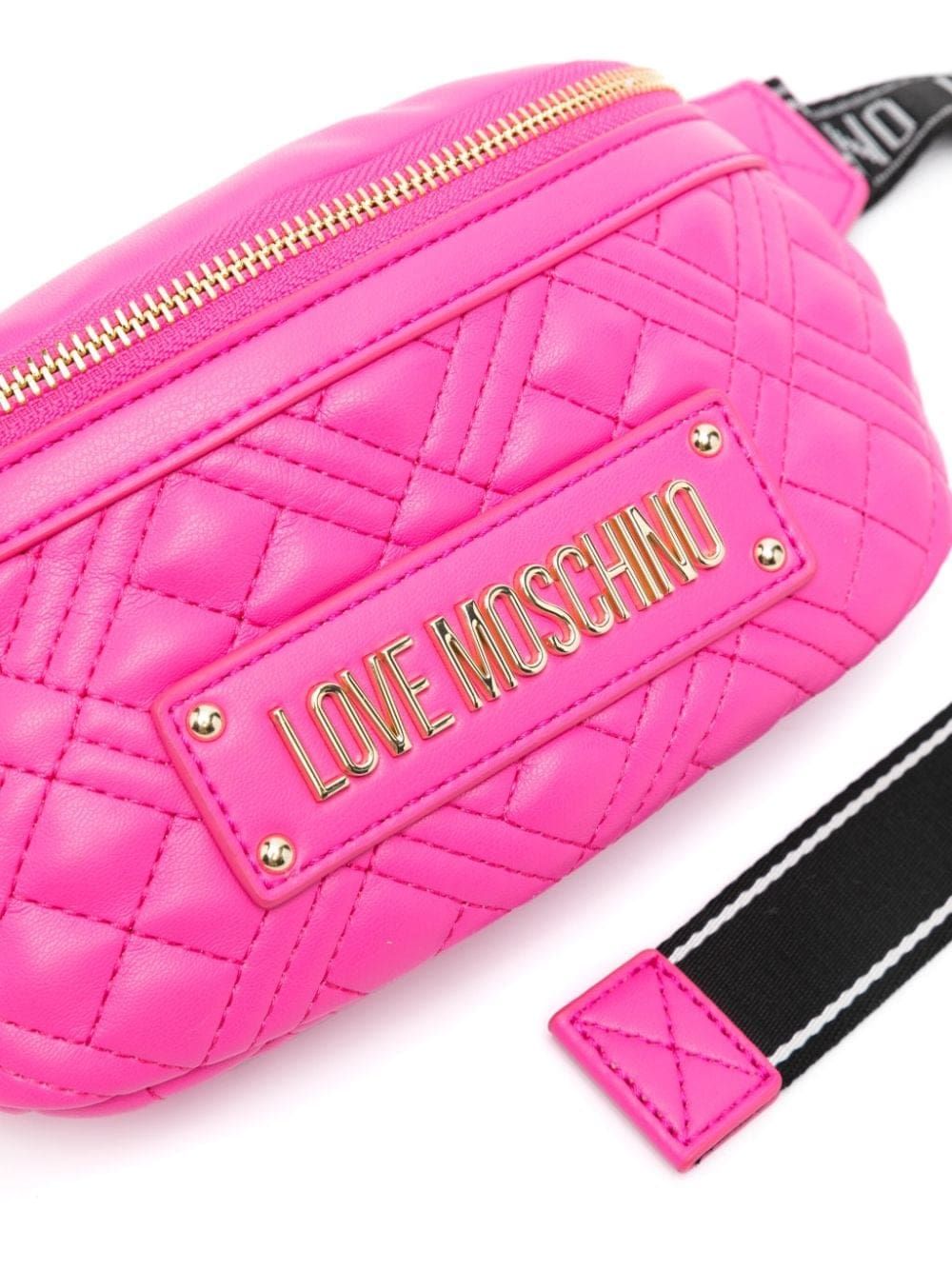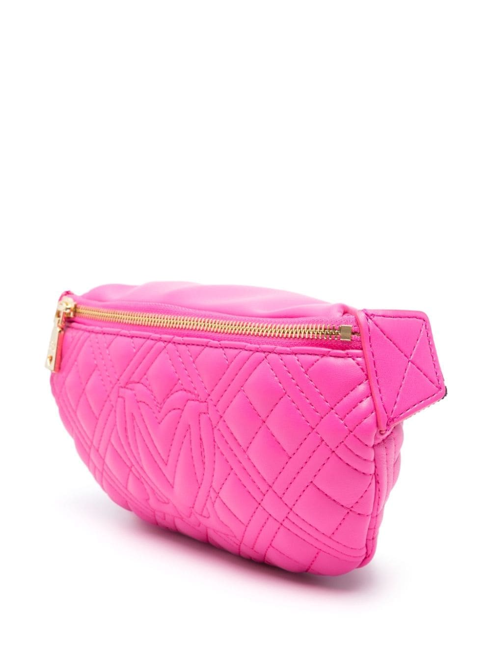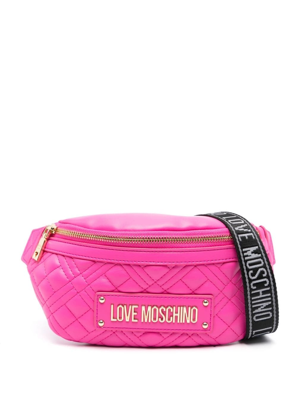 Love Moschino exhibits its playful mood with this fuchsia-pink belt bag. It's made from quilted faux leather and detailed with a gold-tone logo lettering on the front. Meanwhile, the branded adjustable strap enhances practicality.