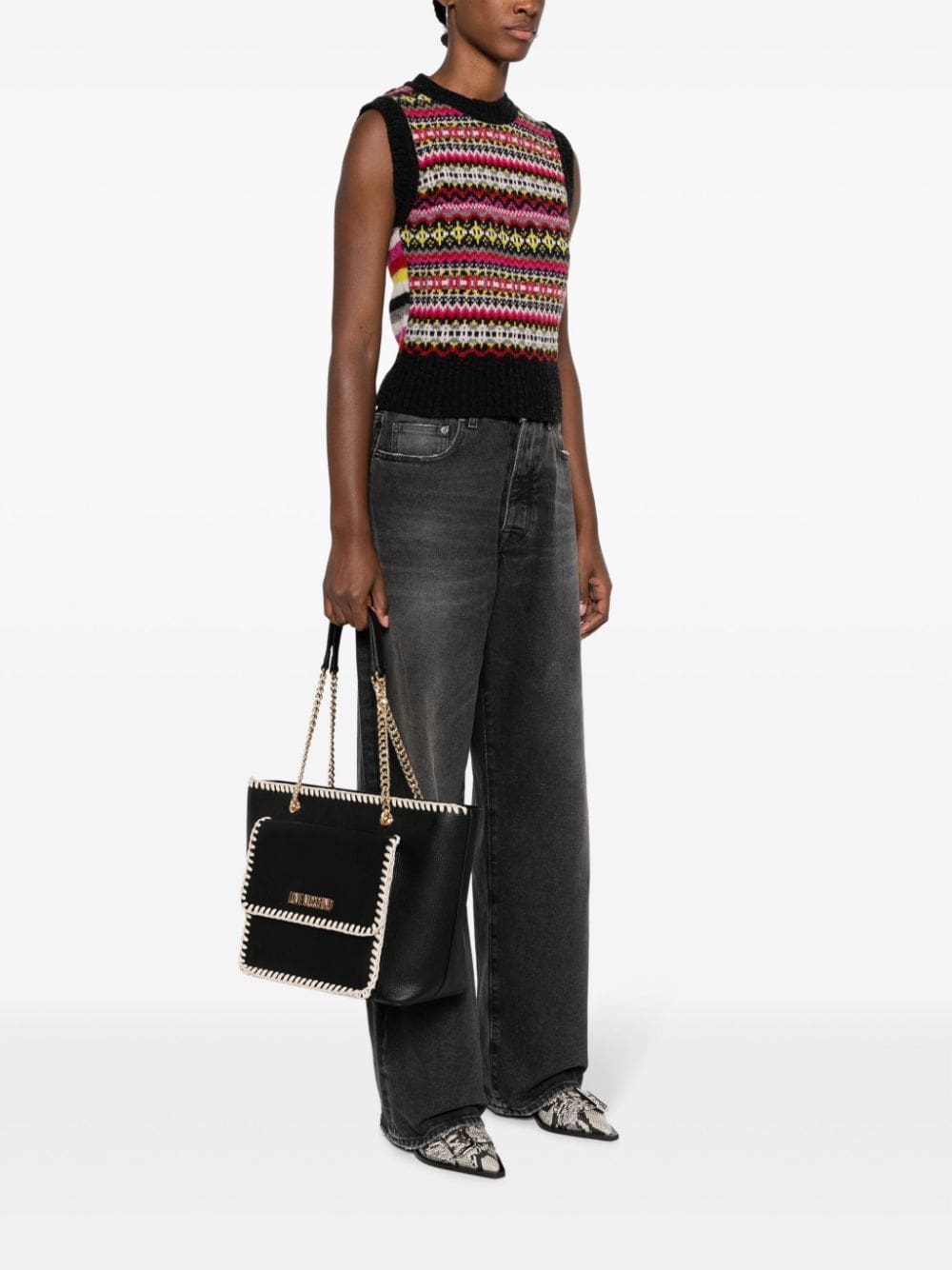 Love Moschino logo-lettering whipstitch-detail tote bag