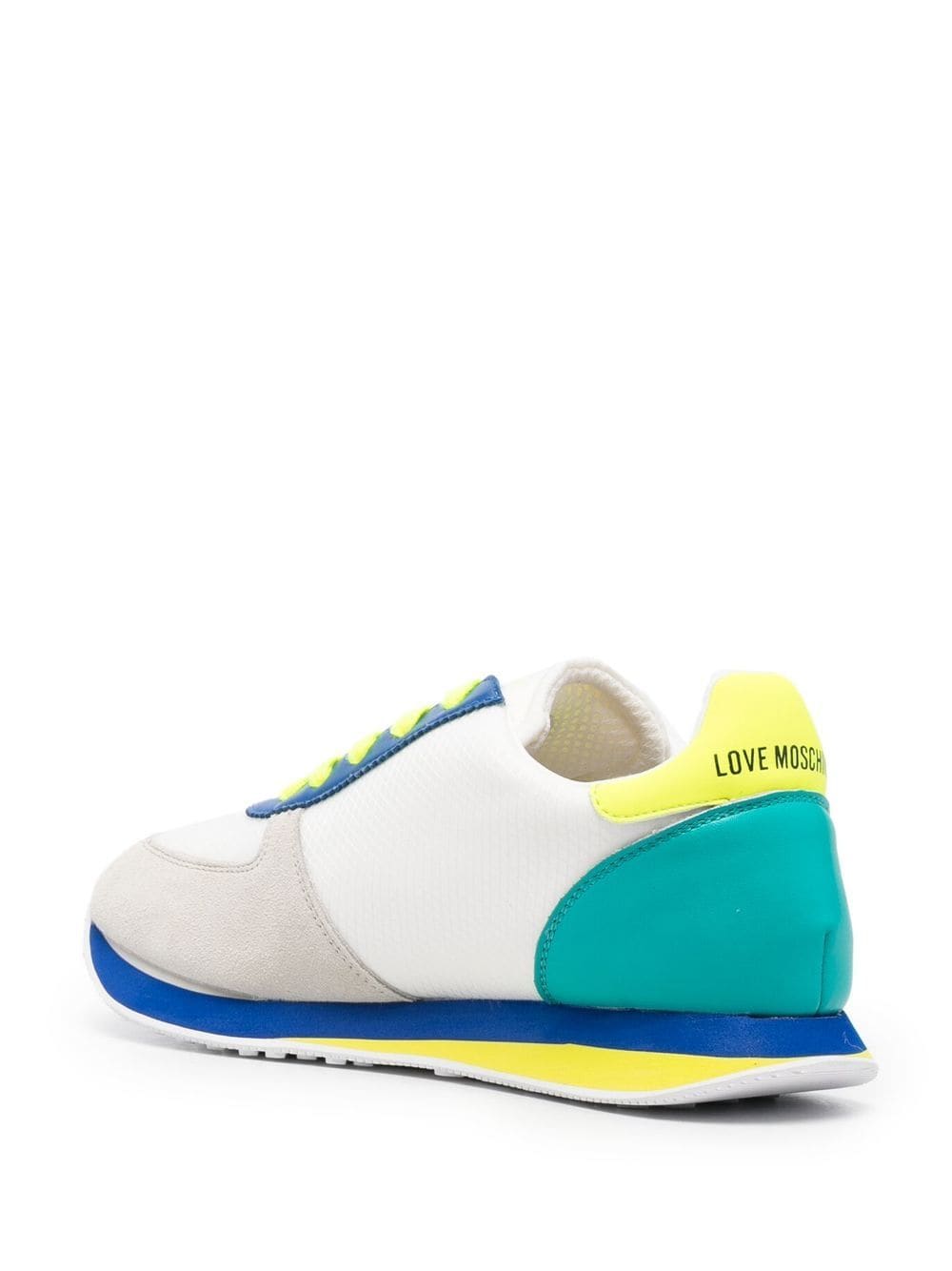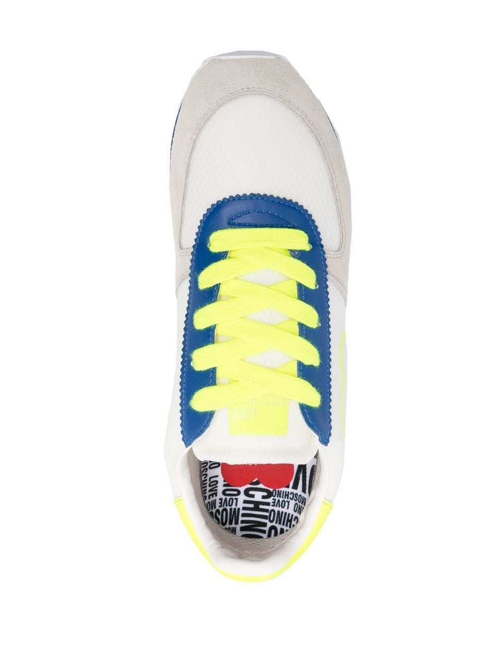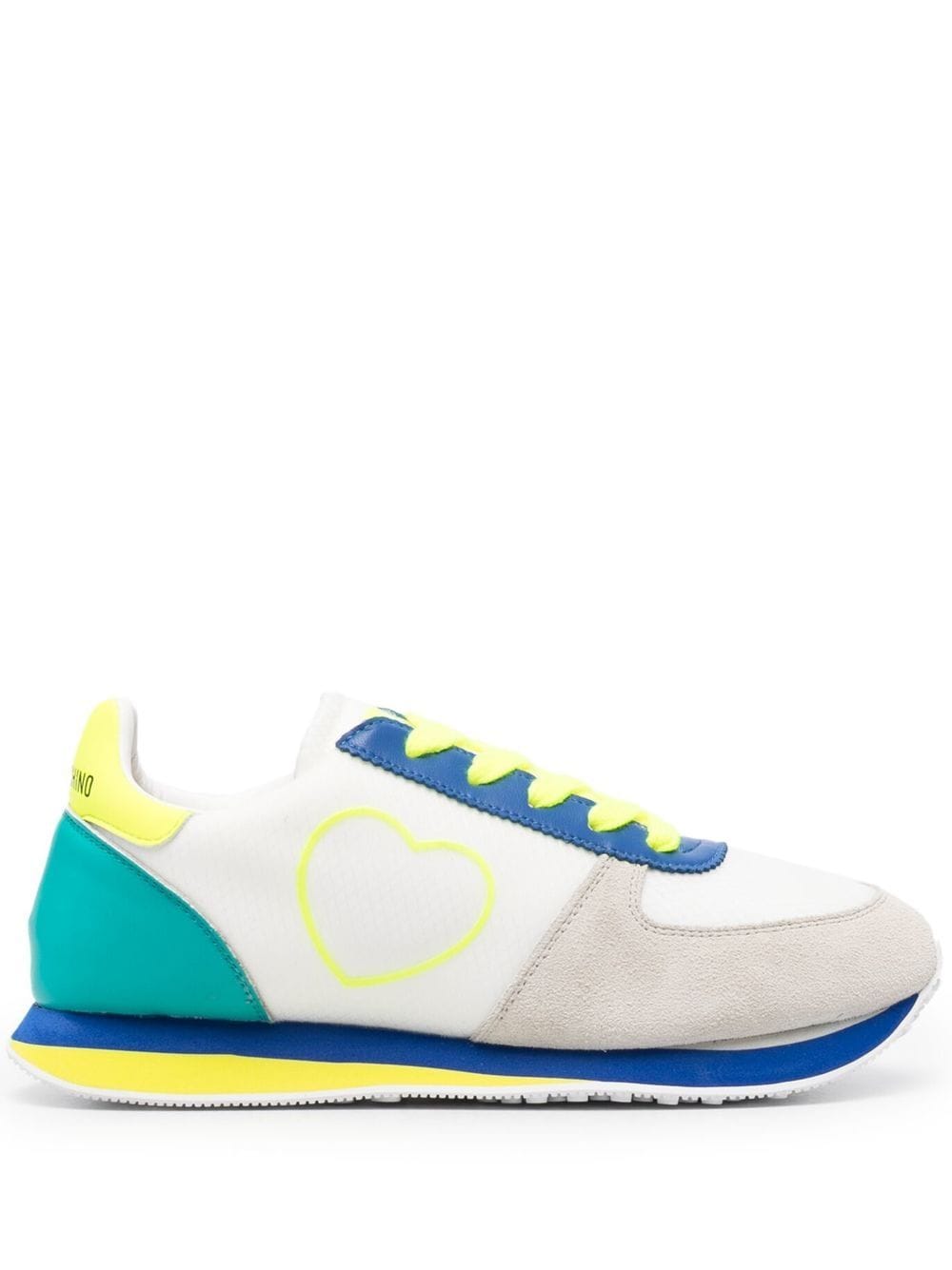 bone white/blue suede panelled design branded heel counter heart print round toe front lace-up fastening branded insole flat rubber sole