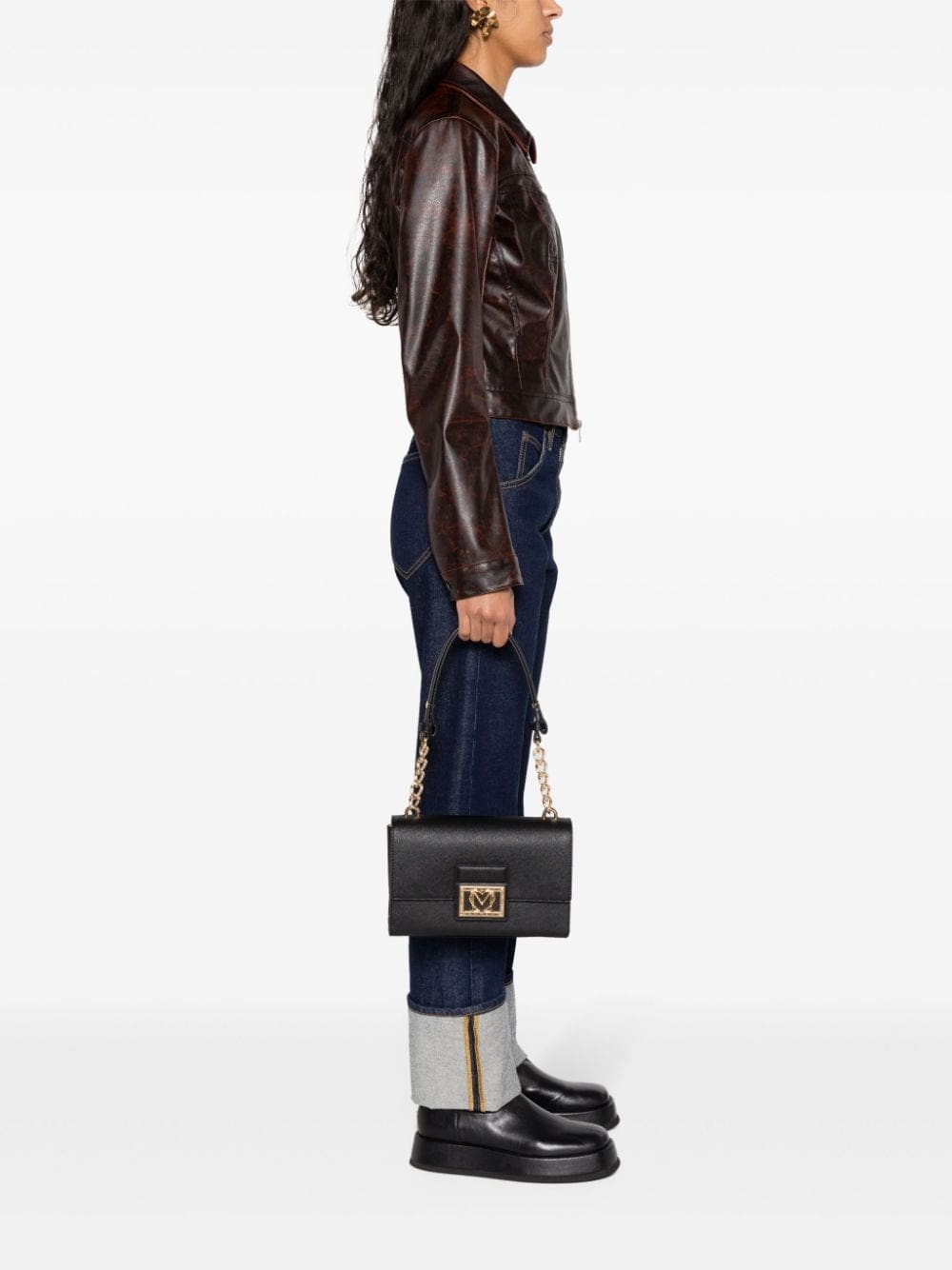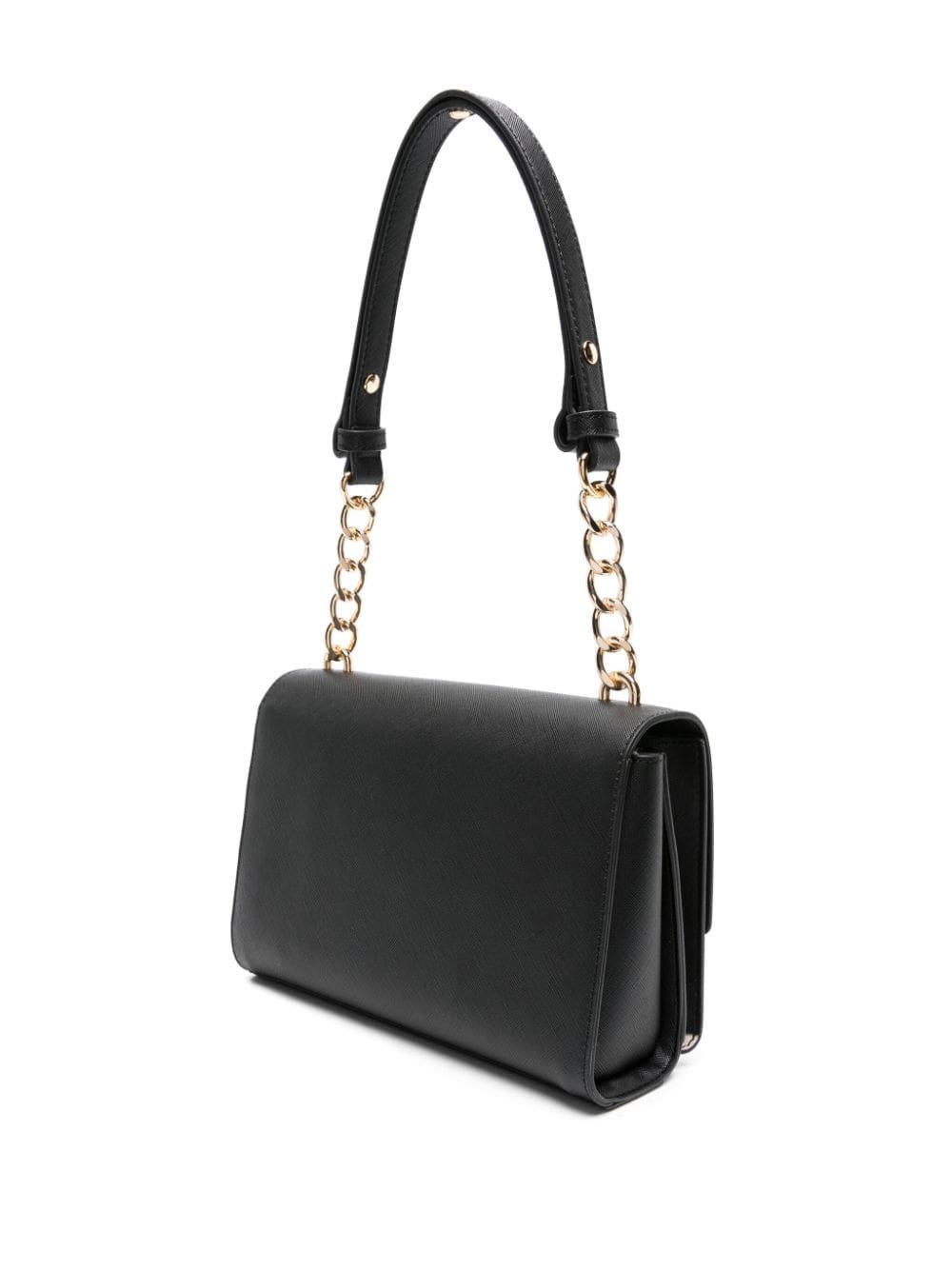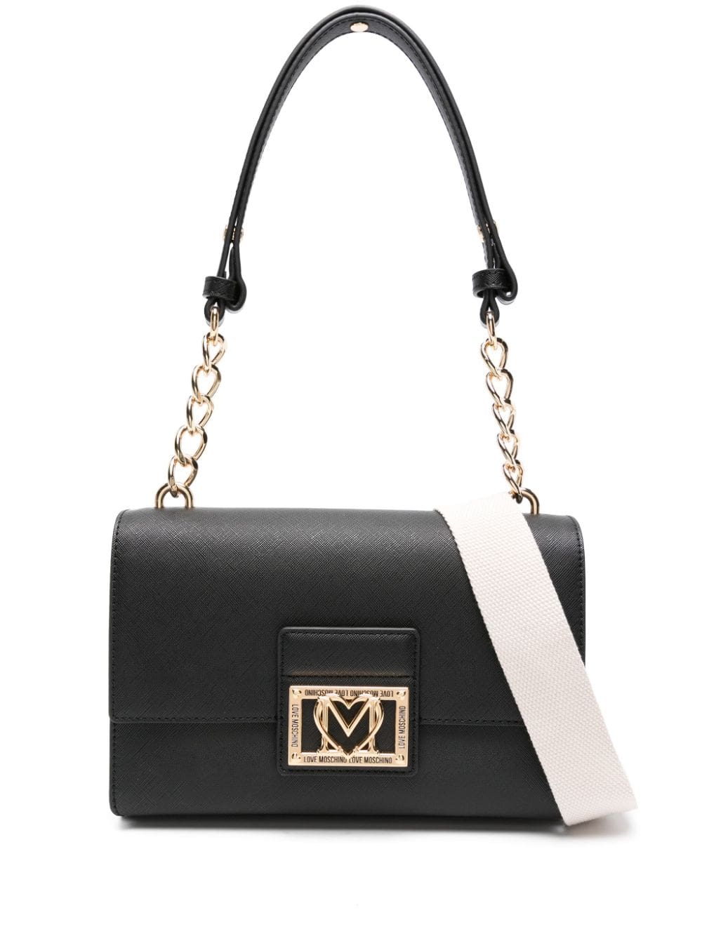 - chain-link and faux leather shoulder strap
