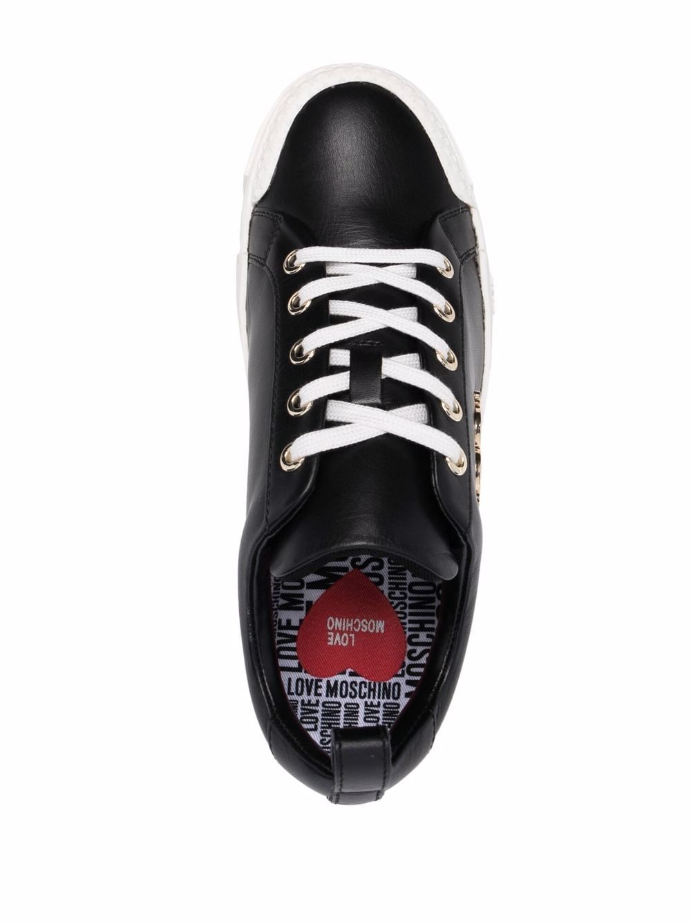 black gold-tone logo plaque round toe front lace-up fastening branded insole pull-tab at the heel flat rubber sole