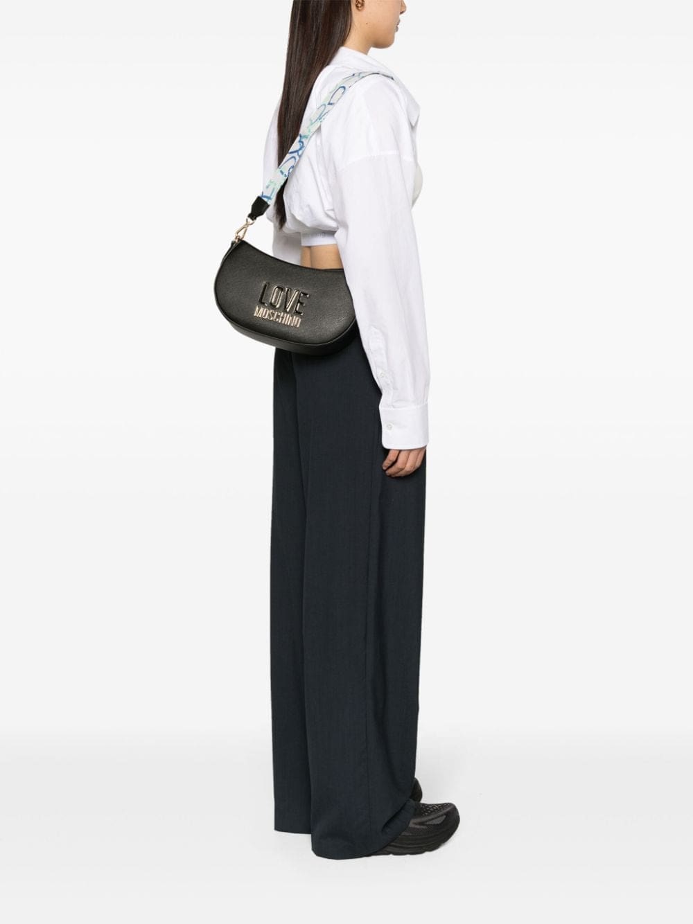 logo-plaque textured crossbody bag