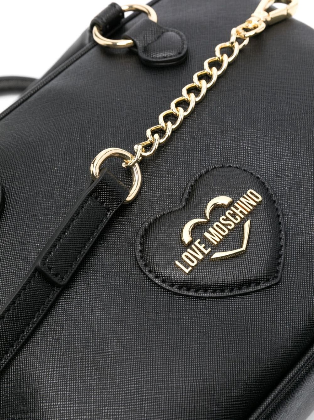 - faux-leather and chain-link shoulder strap