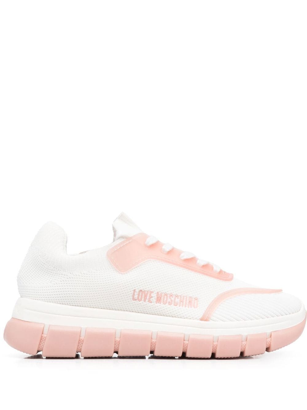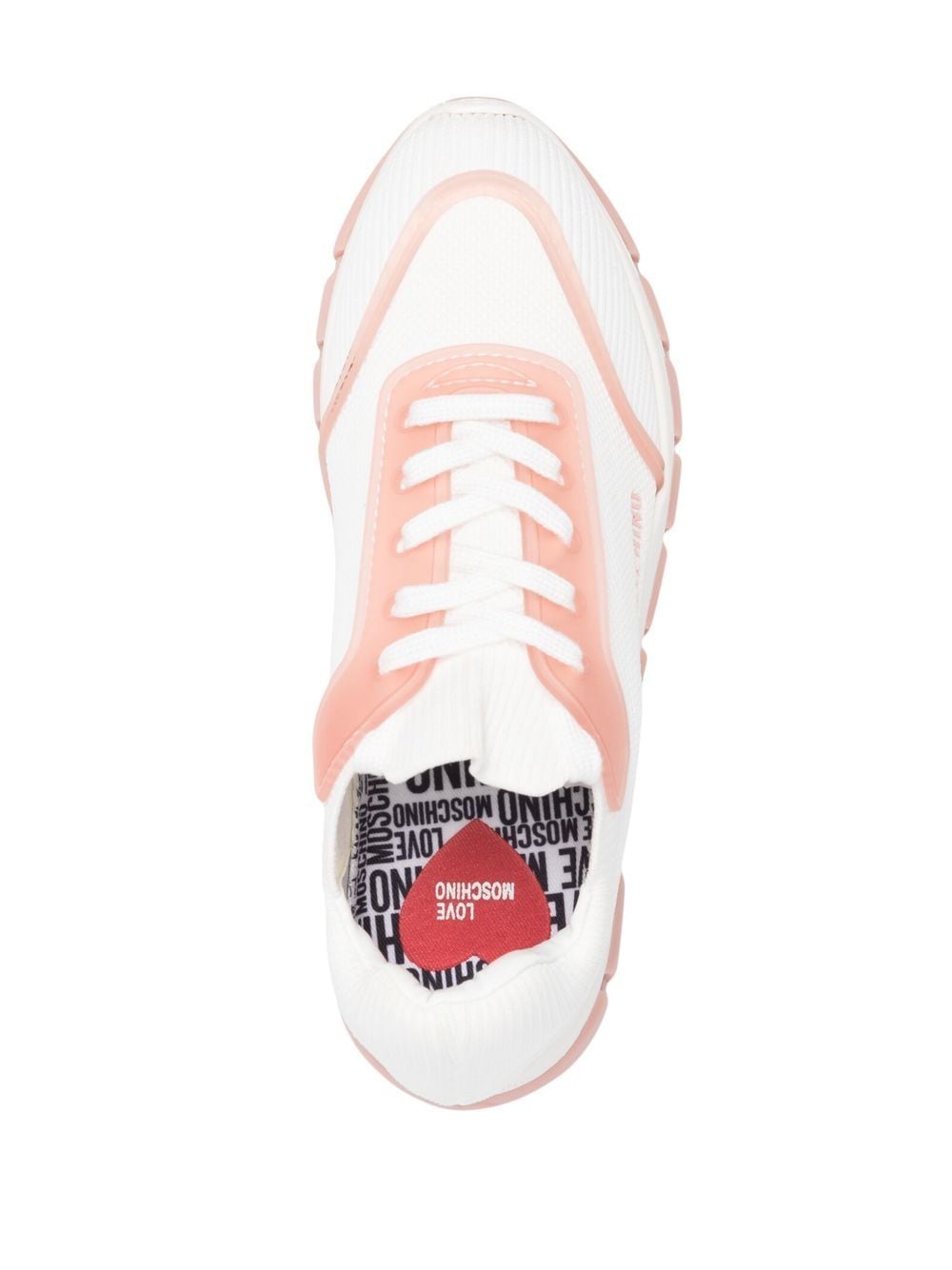 white/pink logo print to the side front lace-up fastening round toe ridged rubber sole branded insole