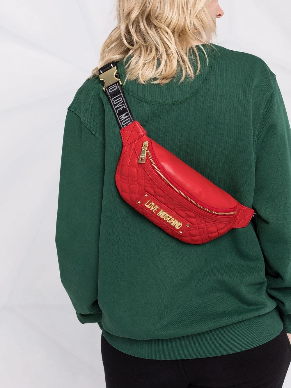 Love Moschino presents this belt bag showcasing the brand's signature quilted design. Gold-tone logo lettering makes this accessory instantly recognisable.
