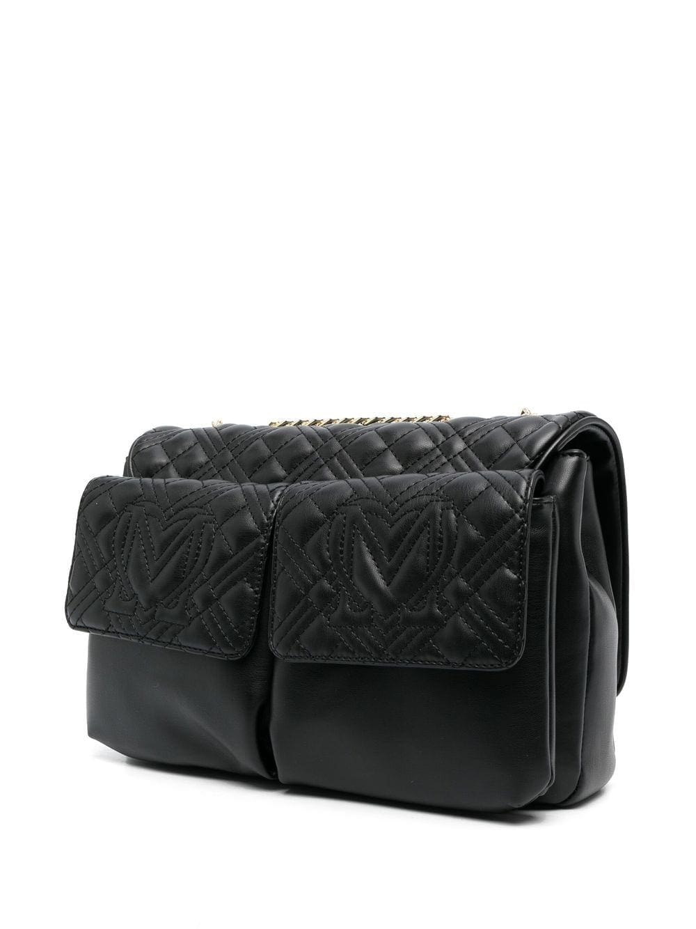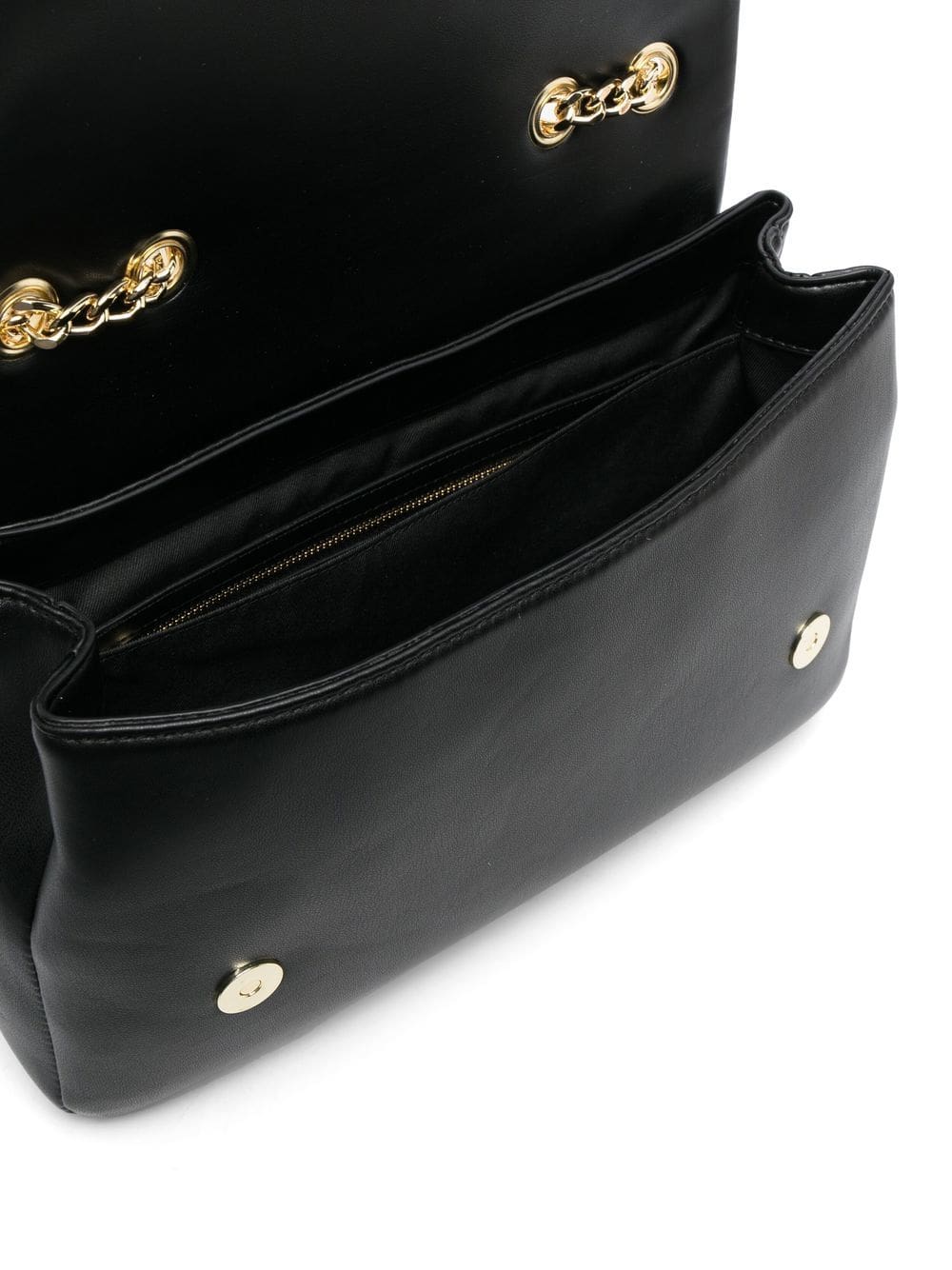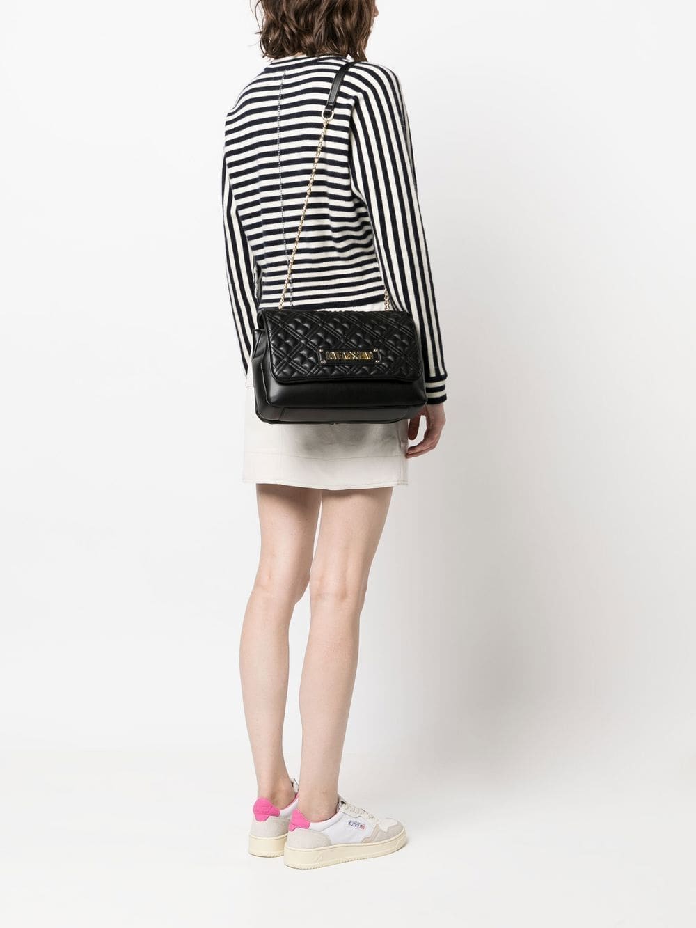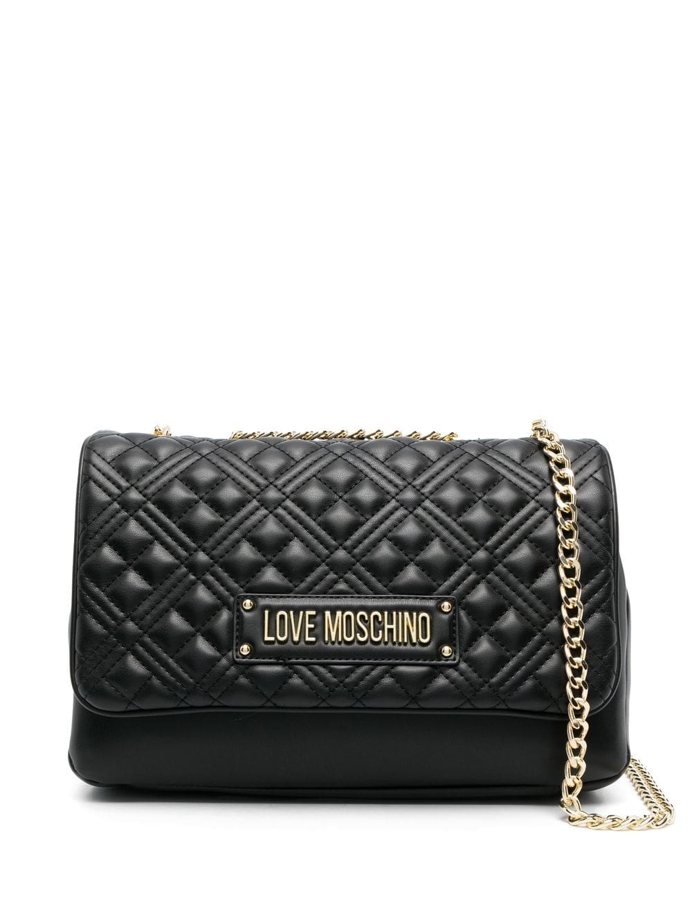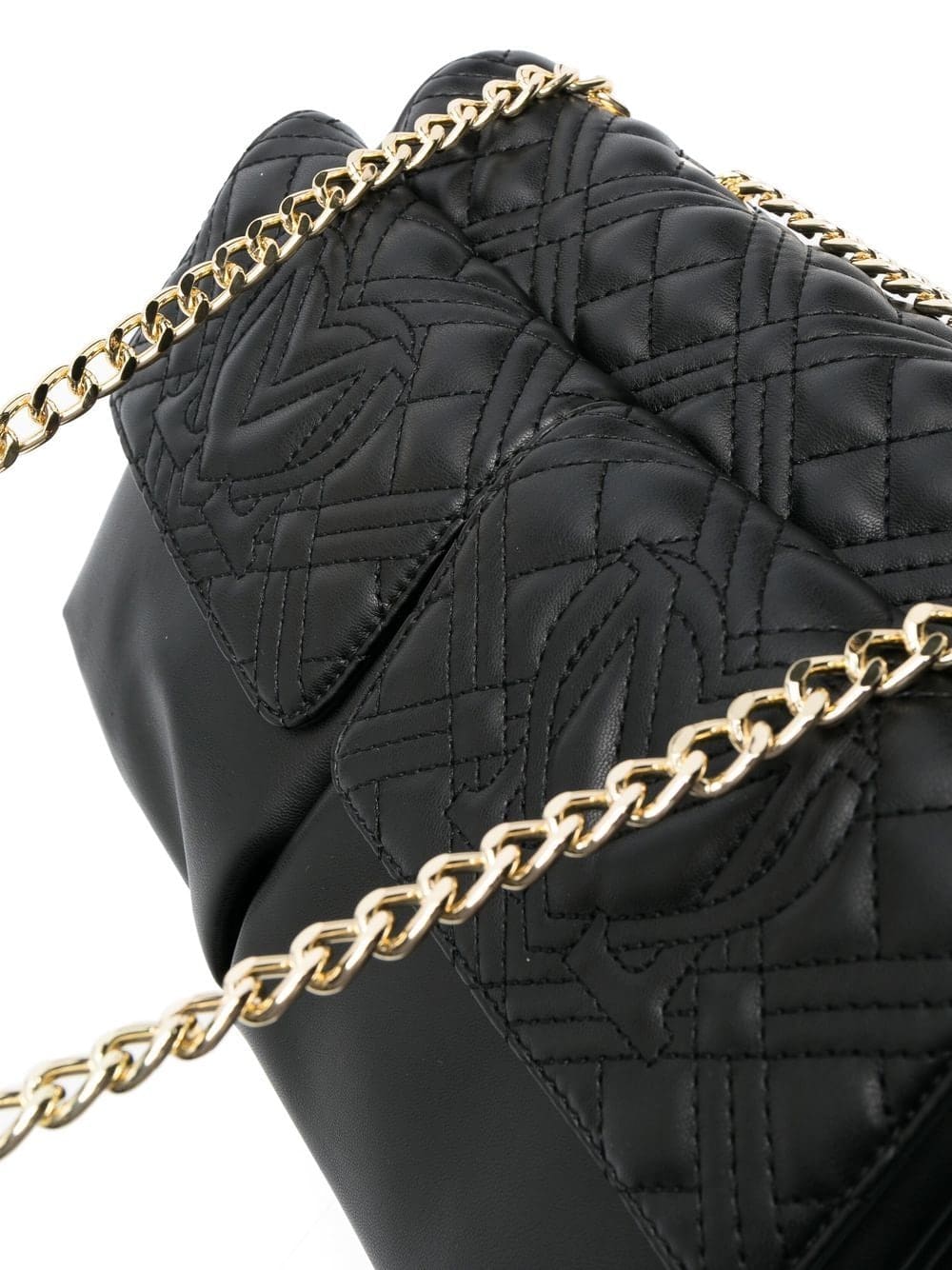 jet black quilted finish gold-tone logo plaque foldover top with magnetic fastening internal zip-fastening pocket chain-link shoulder strap
