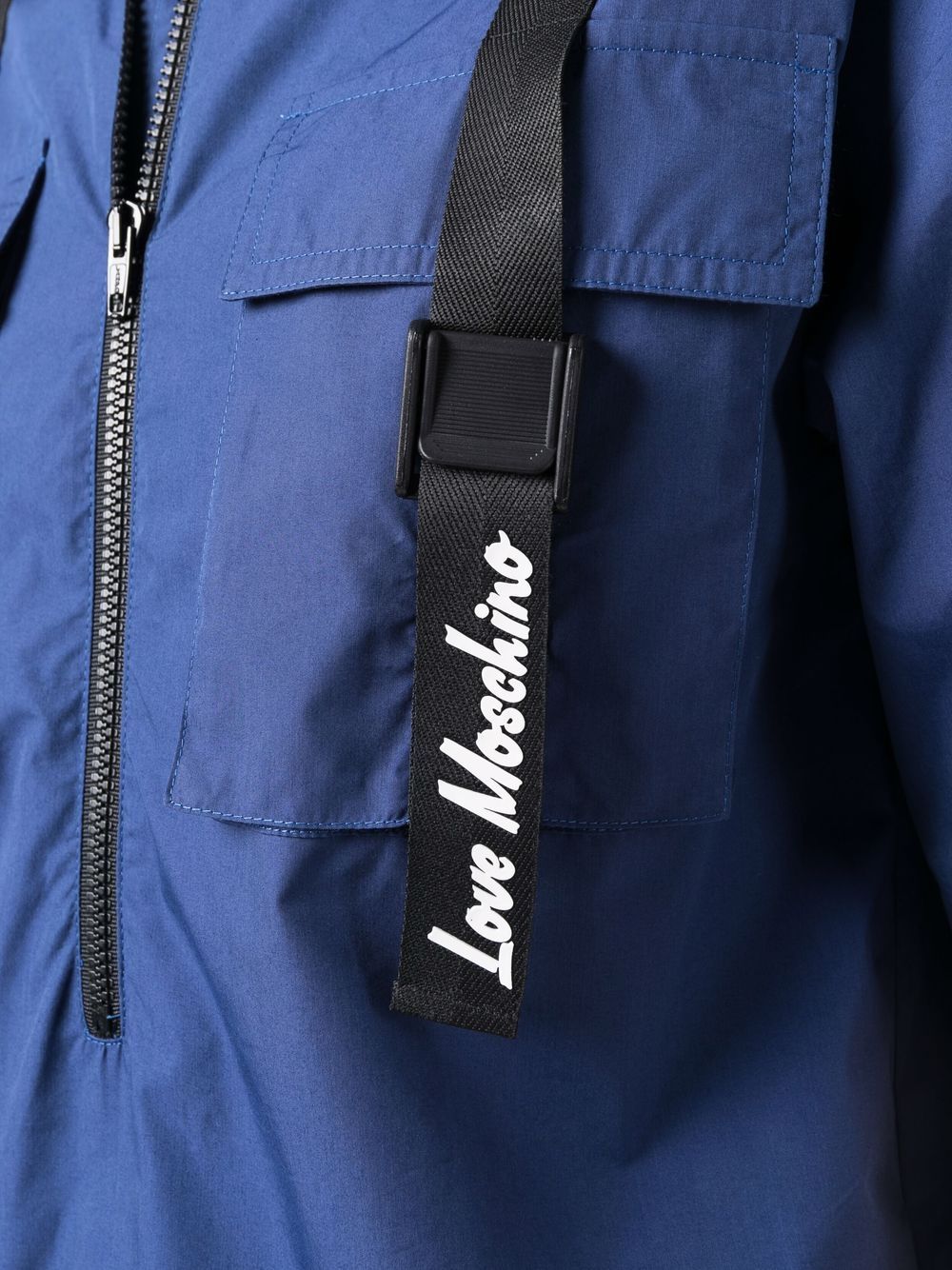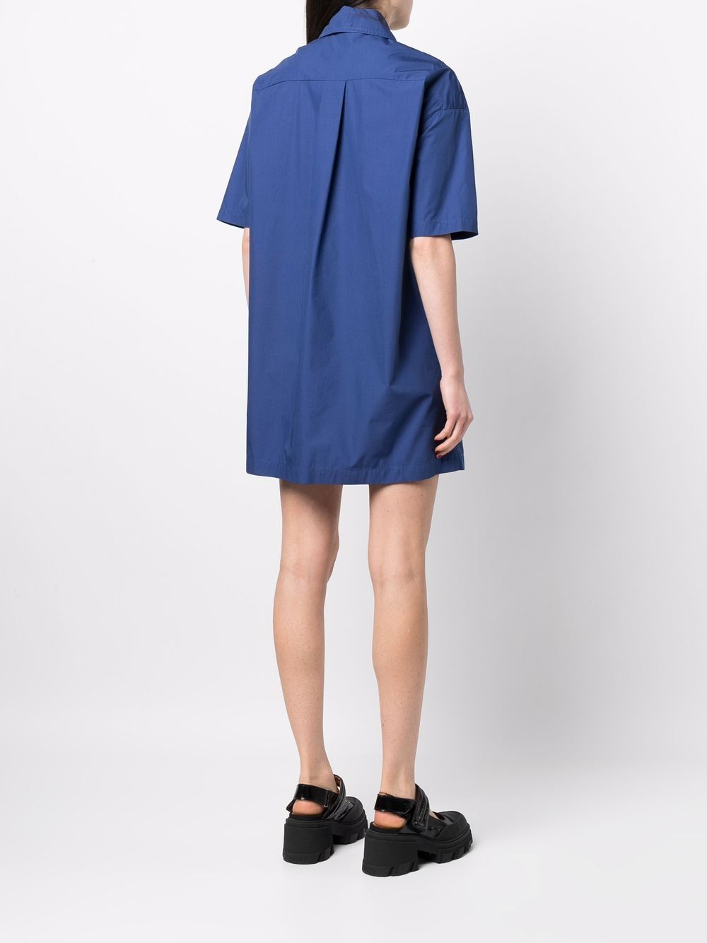 electric-blue cotton-blend classic collar front zip fastening short sleeves curved hem