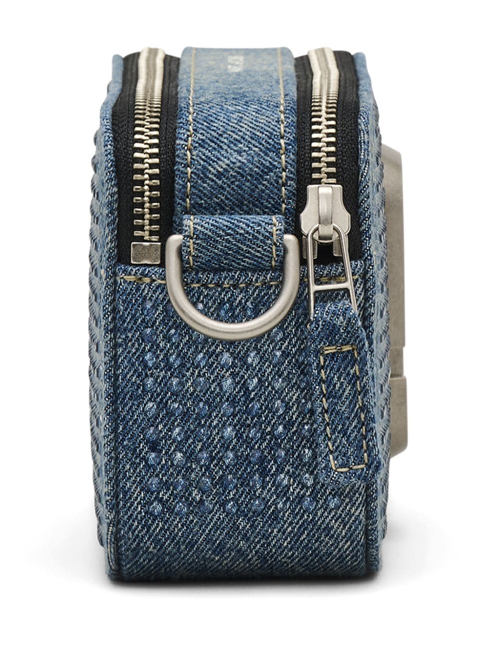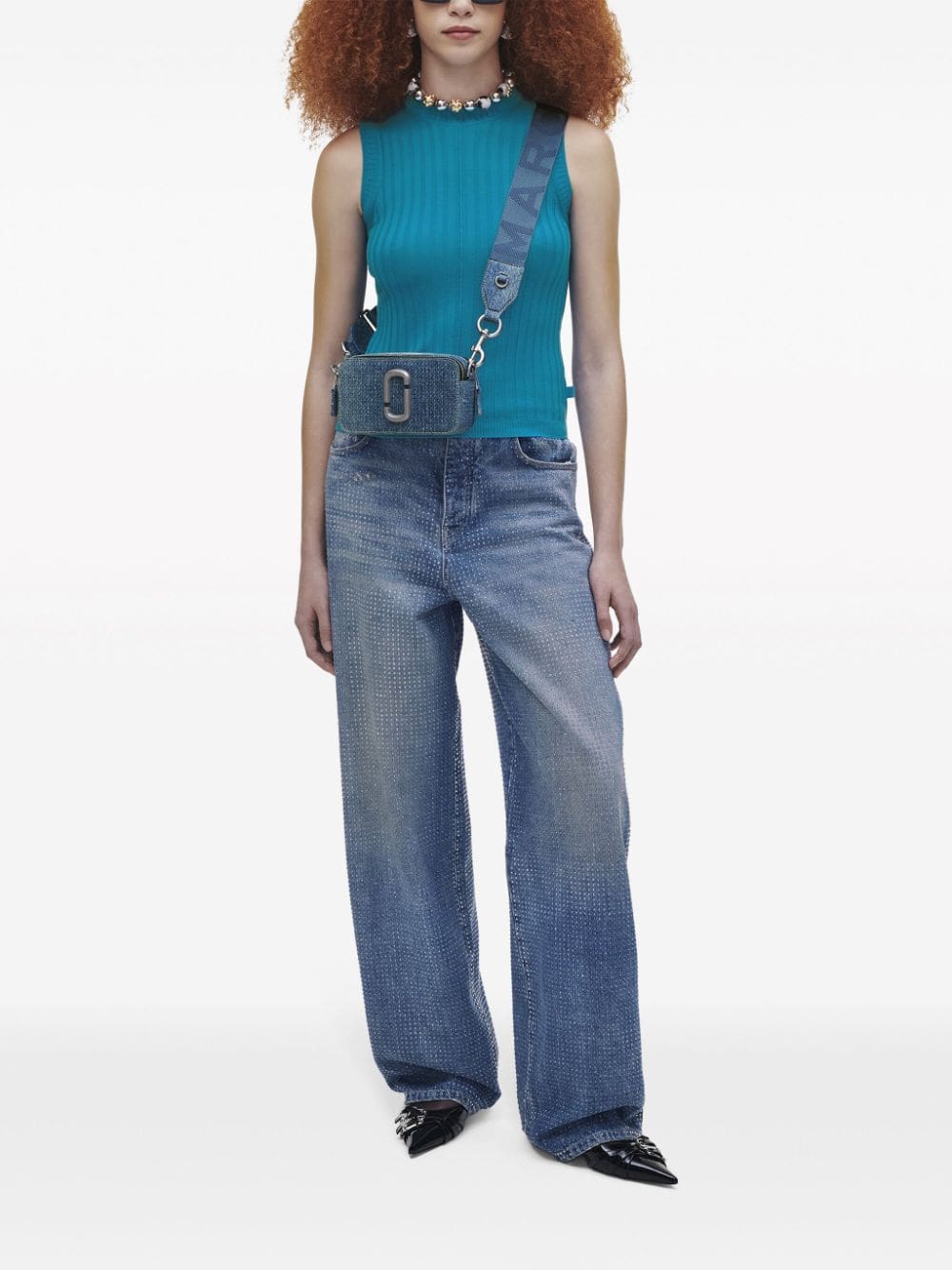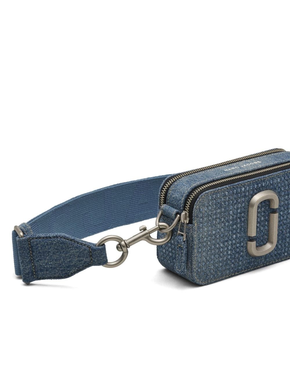 This version of The Snapshot shares the same compartmentalised silhouette and J Marc logo plaque as the archetype but is differentiated by the crystal-encrusted denim construction. The wide logo-jacquard shoulder strap stays true to its camera bag roots.