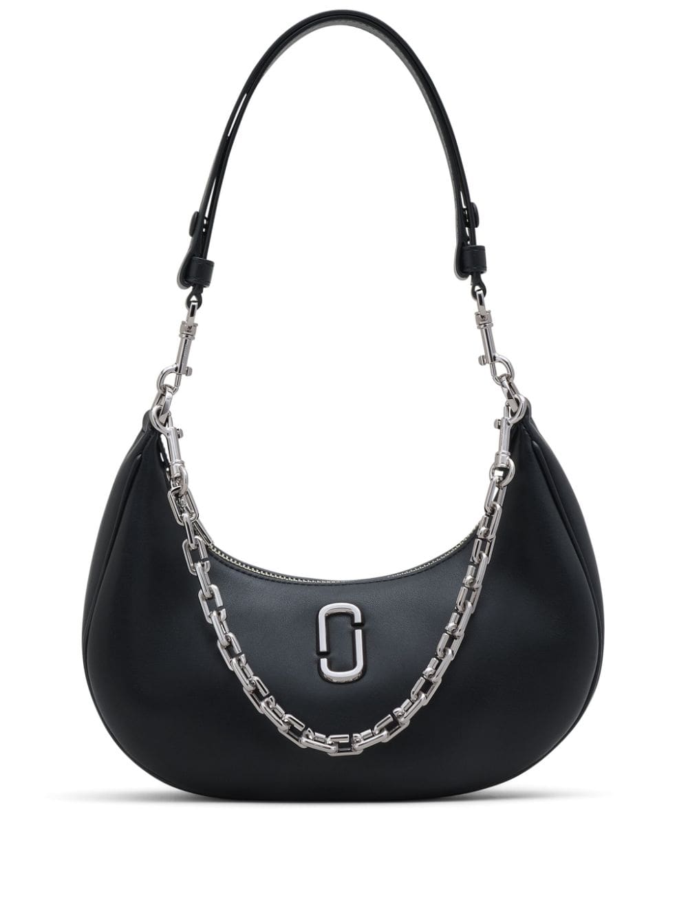 The Curve bag from Marc Jacobs is named for its distinctive half-moon silhouette. This iteration is crafted from smooth black leather and suspended by an adjustable strap for a custom drop.