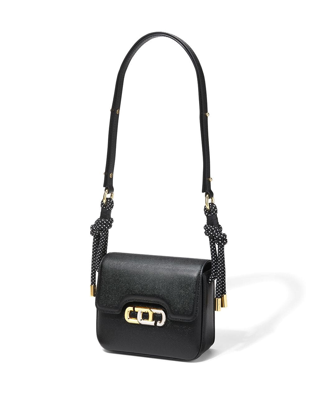 black leather knot detailing logo plaque adjustable shoulder strap foldover top with magnetic fastening main compartment gold-tone hardware