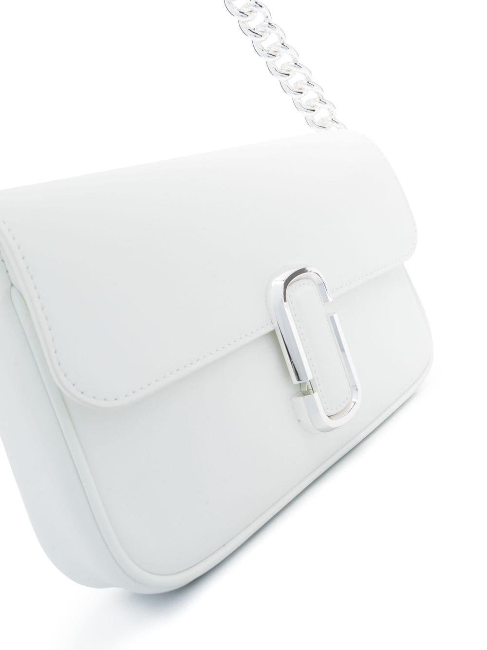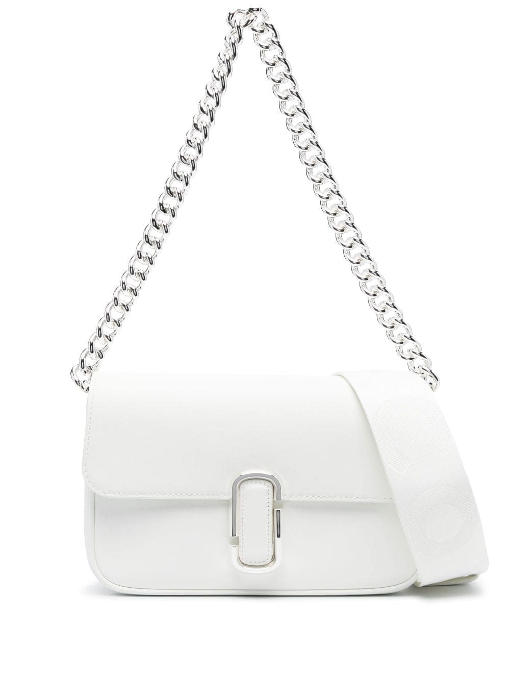 Marc Jacobs’ penchant for versatile accessories manifests in this white leather J Marc shoulder bag. It benefits from two detachable straps – a thick webbing style and a silver-tone chain-link one – for custom styling.