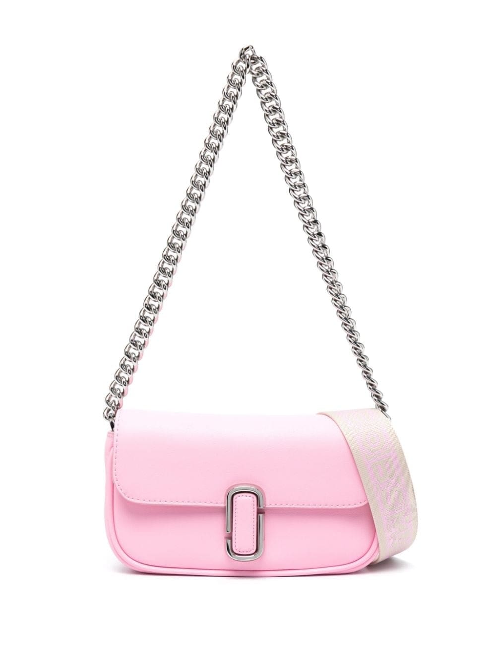 Defined by its instantly recognisable logo plaque at the centre, Marc Jacobs' The J Marc bag is reimagined for AW23 in a candy-pink colour. Made from smooth leather, the accessory benefits from two detachable shoulder straps — a chain-link and a webbed one —, allowing it to be worn in multiple ways.