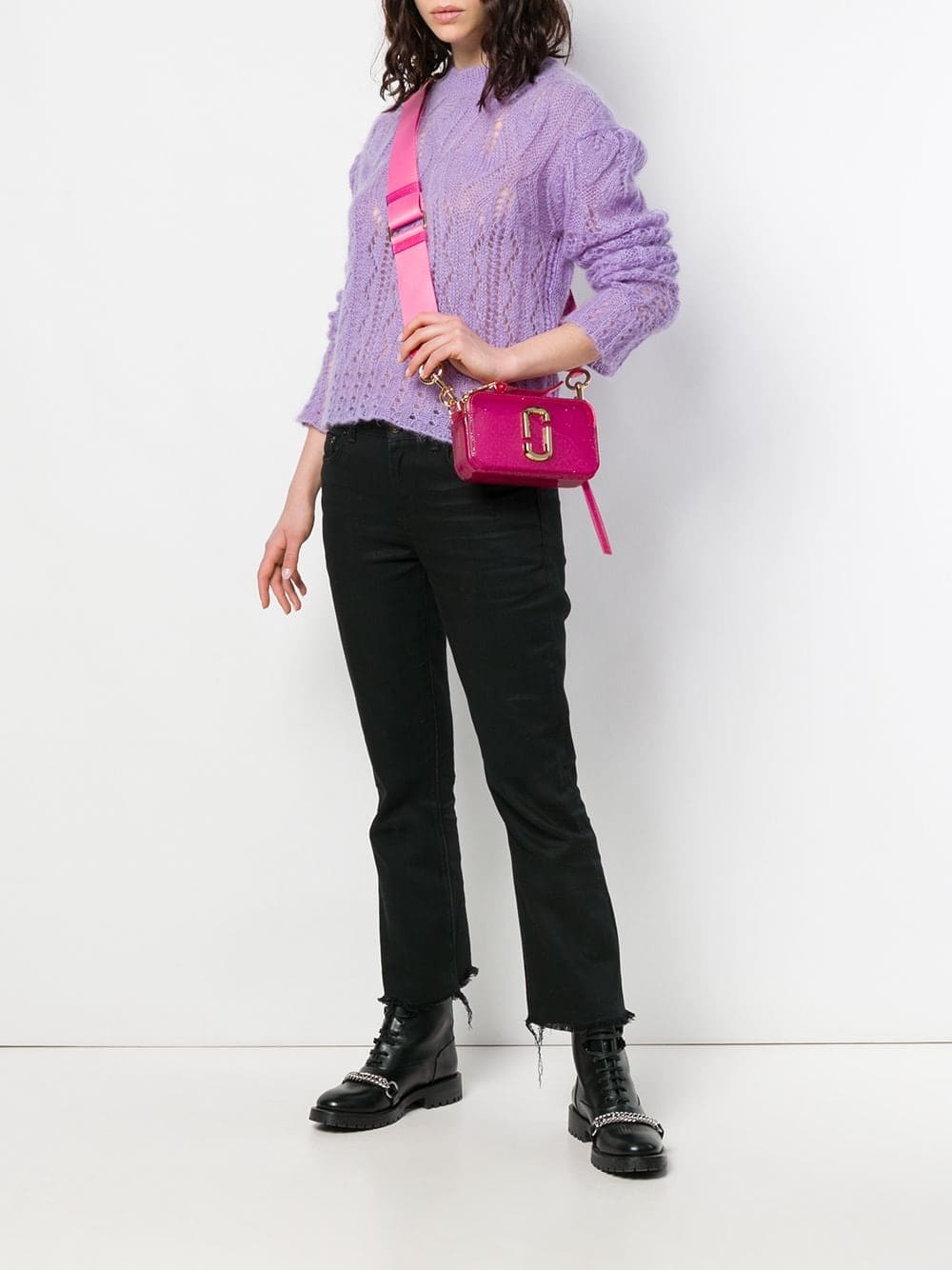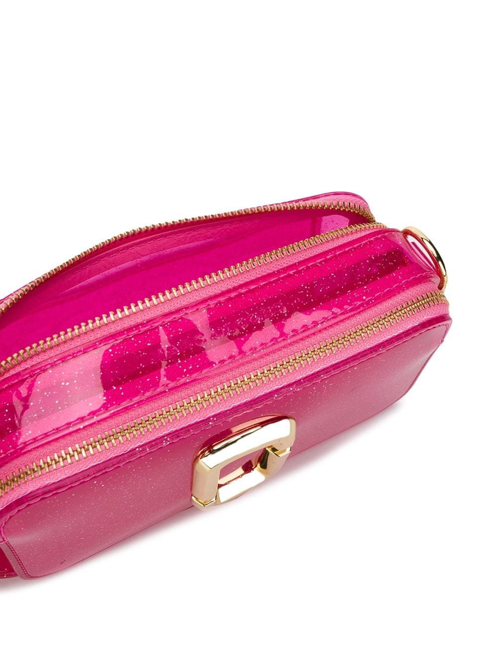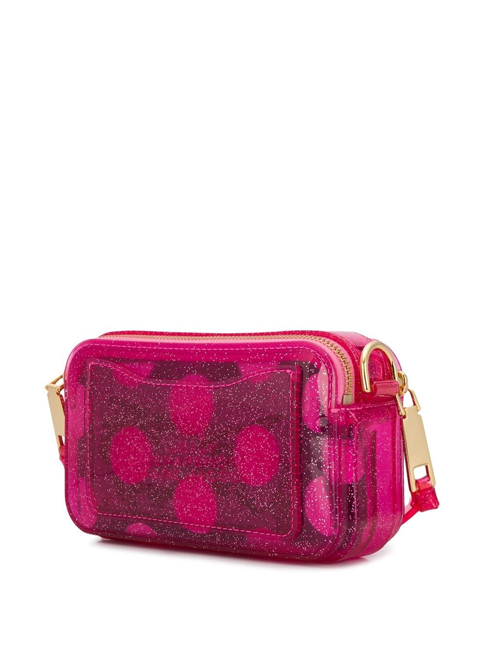 Founded in 1984, Marc Jacobs is one of the most influential designers of our time. Unexpected and always pushing boundaries, expect to see pieces and accessories infused with an irreverent approach, wearability and personality. Characterised with glitter detailed PVC, this pink Jelly Glitter Snapshot camera bag features a detachable and adjustable shoulder strap, a double top zip closure, a front logo plaque, a back slip pocket, an internal logo patch, gold-tone hardware and removable dot patterned pouch.