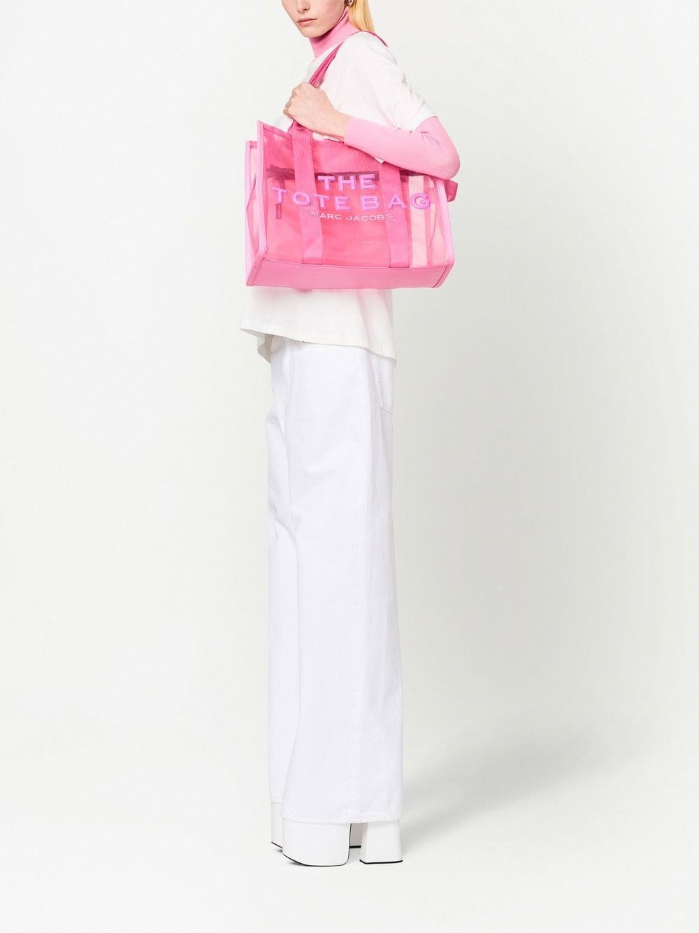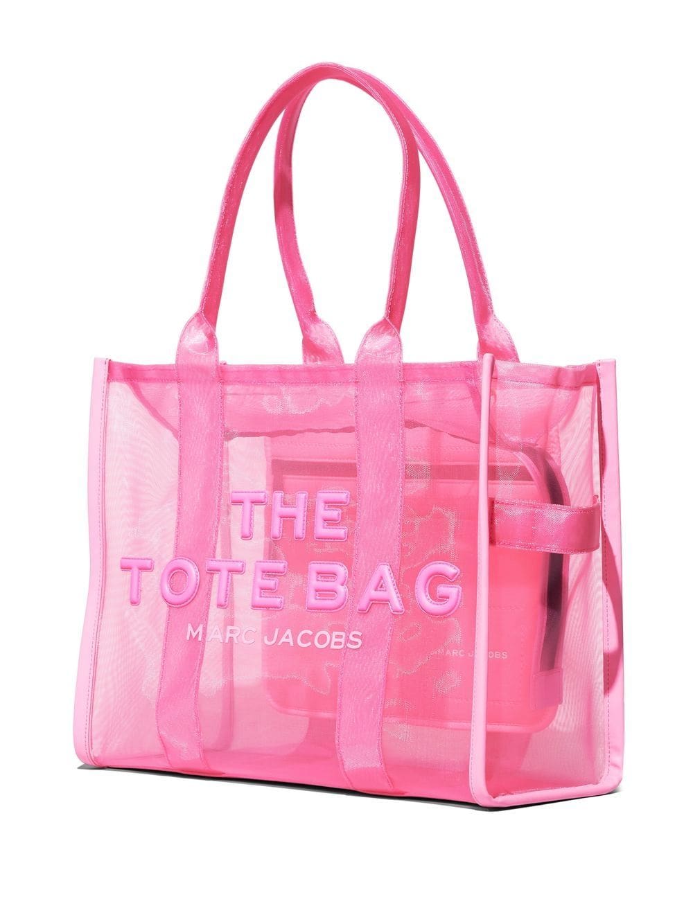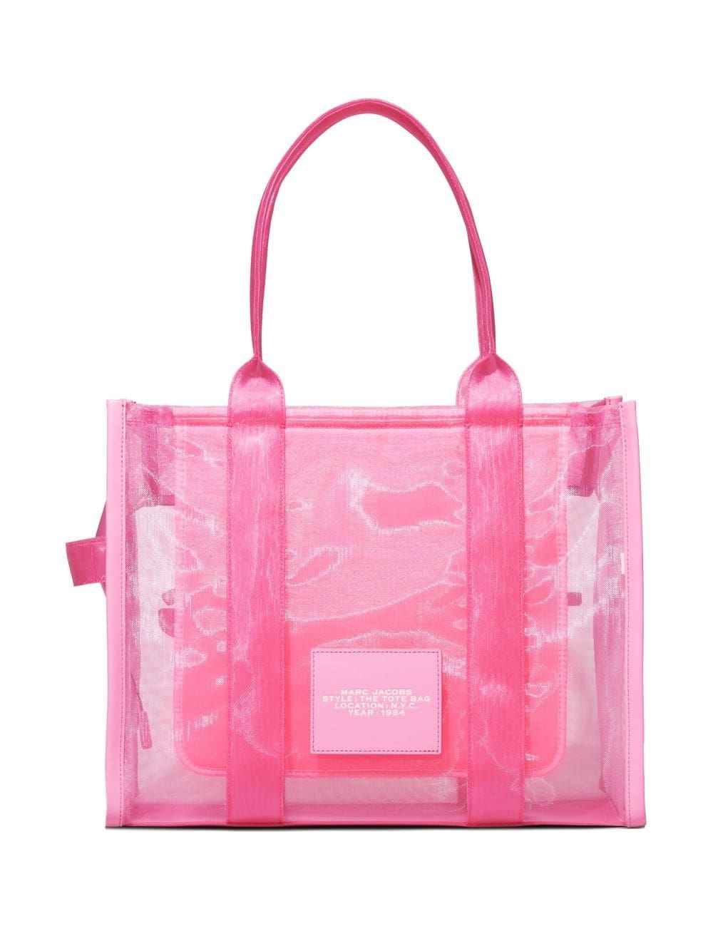 pink sheer mesh detailing embossed logo to the front logo patch to the rear two top handles single flat side handle top zip fastening main compartment internal zip-fastening pocket
