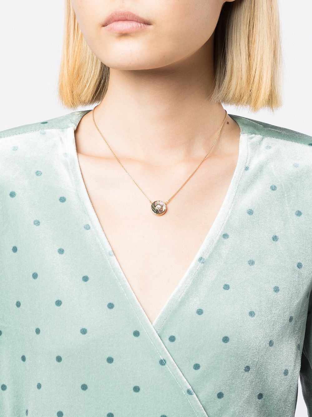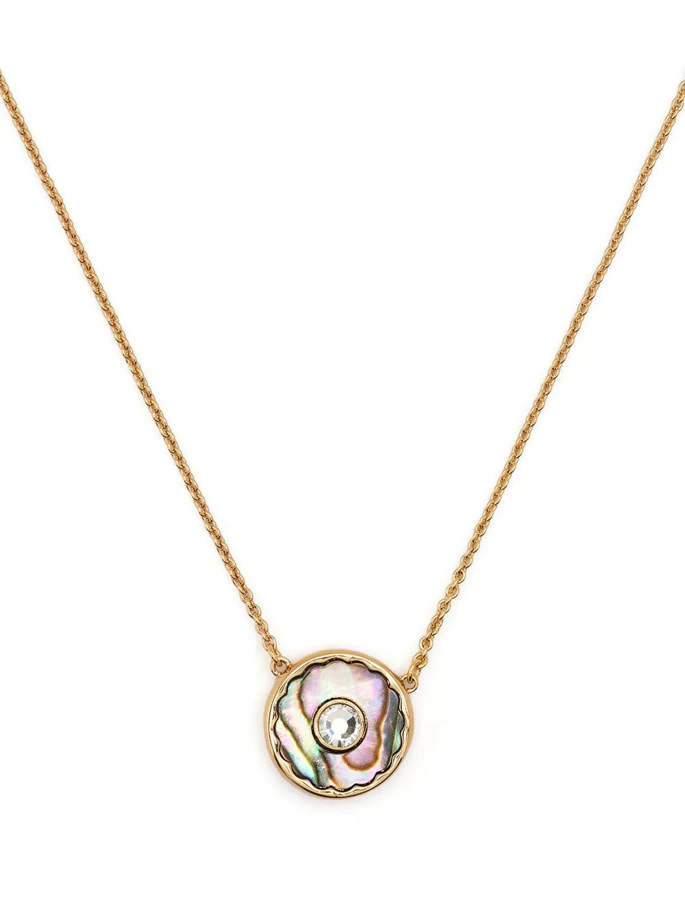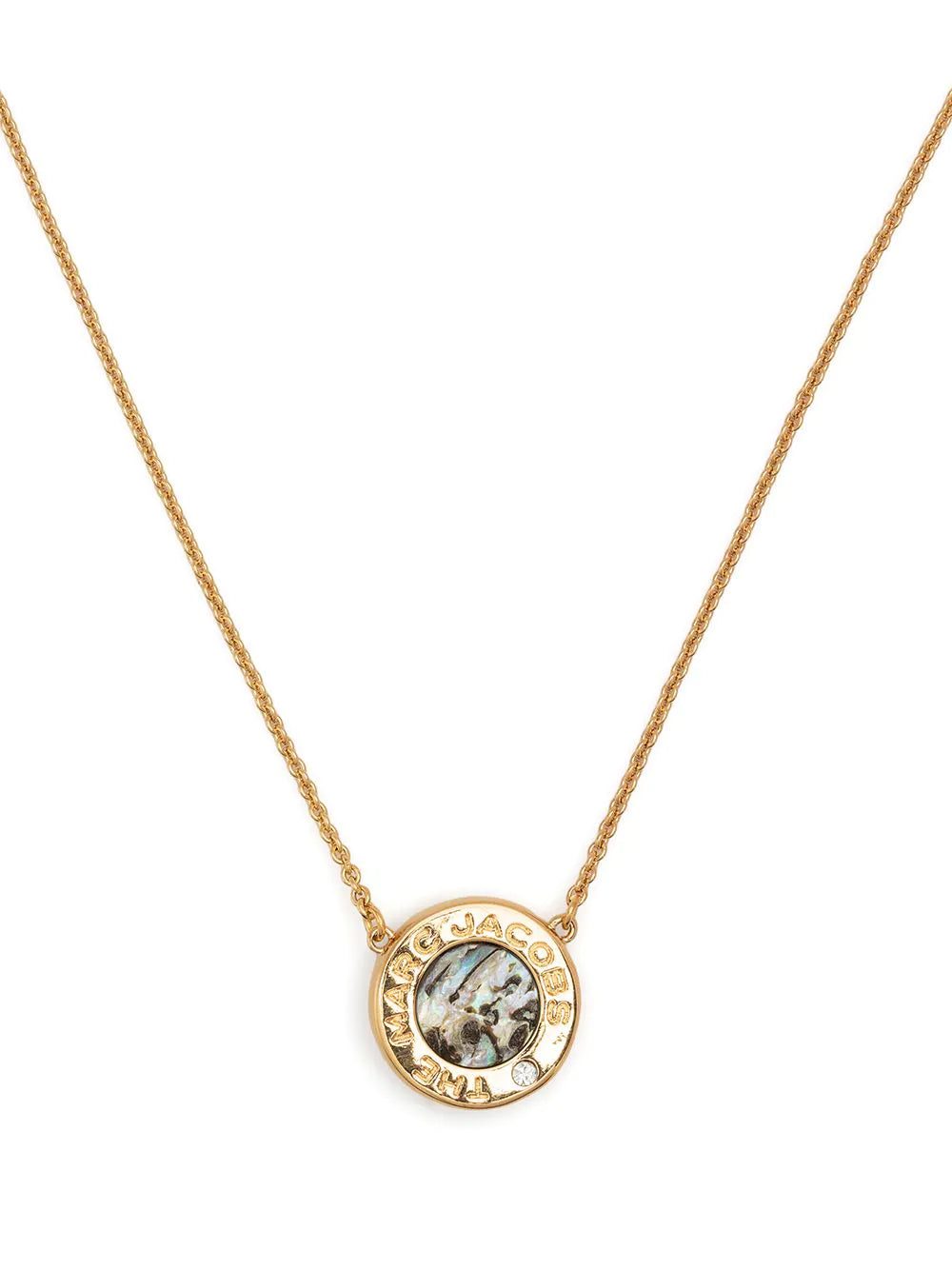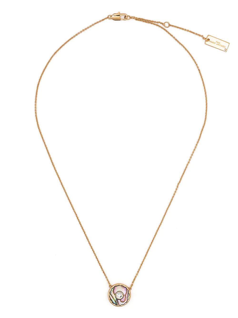 Marc Jacobs' necklace embodies the brand's optimistic ethos and penchant for vibrant colour. Framed with logo engraving, the rounded pendant is centred with a faceted crystal surrounded by an iridescent effect.