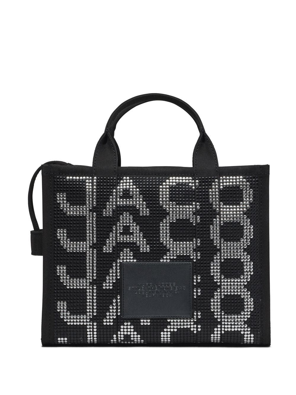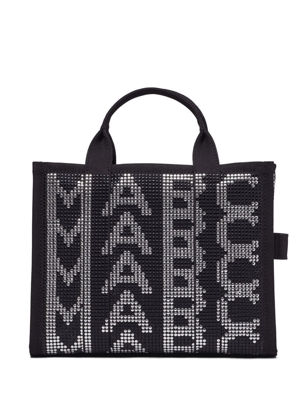 This iteration of Marc Jacobs’ signature tote range is presented in cotton with all-over metallic stud embellishment. The bag boasts bold logo branding to the front and is set against a square profile.