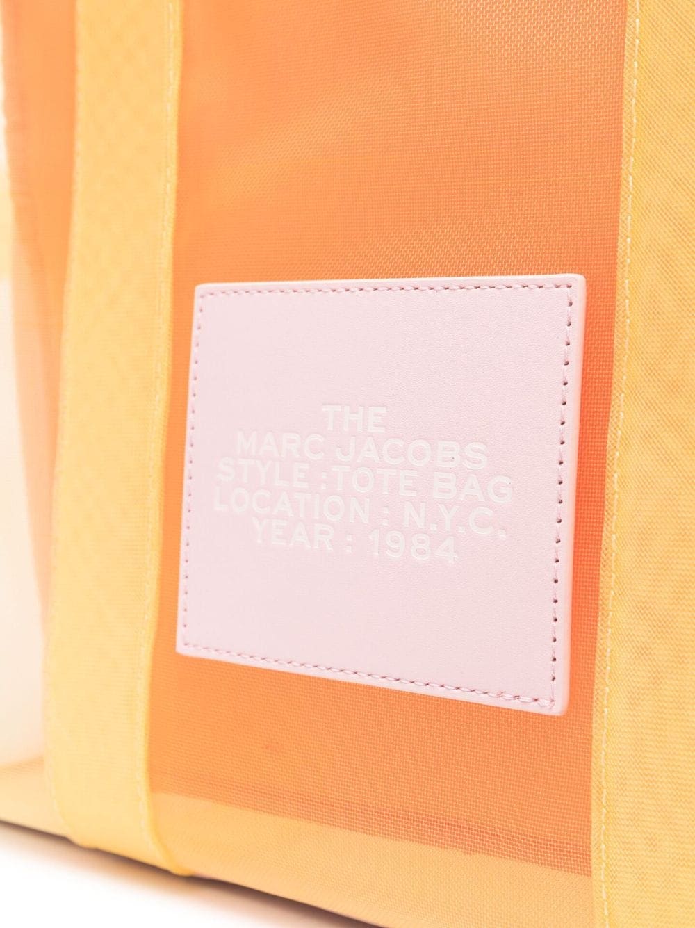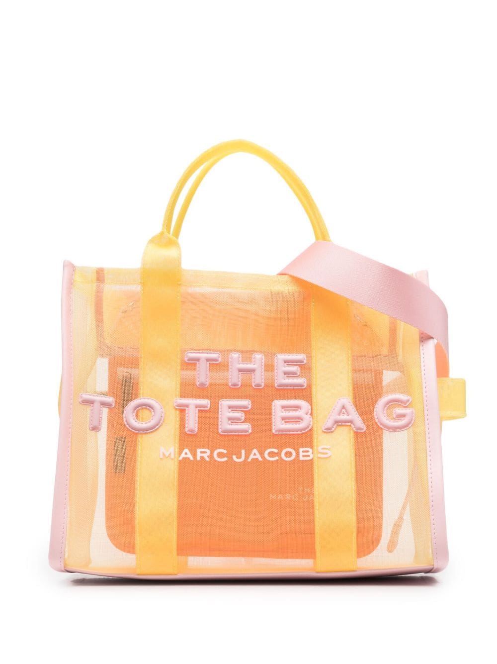 citron yellow leather-blend transparent design logo print to the front two top handles main compartment