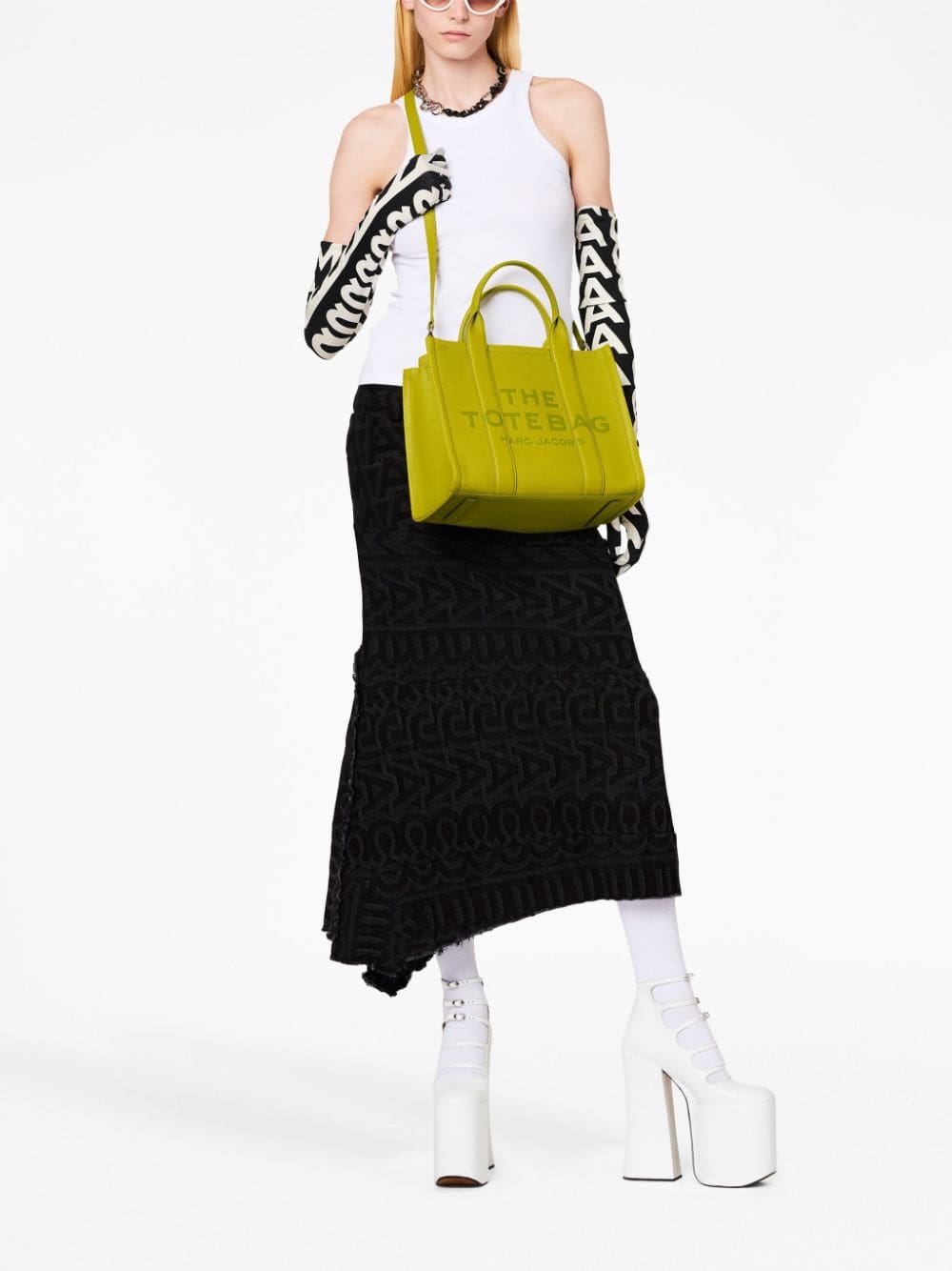 Instantly recognisable by its compact square shape, The Medium Tote bag from Marc Jacobs is featured in many different iterations. This design features the brand's logo and signature slogan print at the front of the design to create a contemporary accessory.