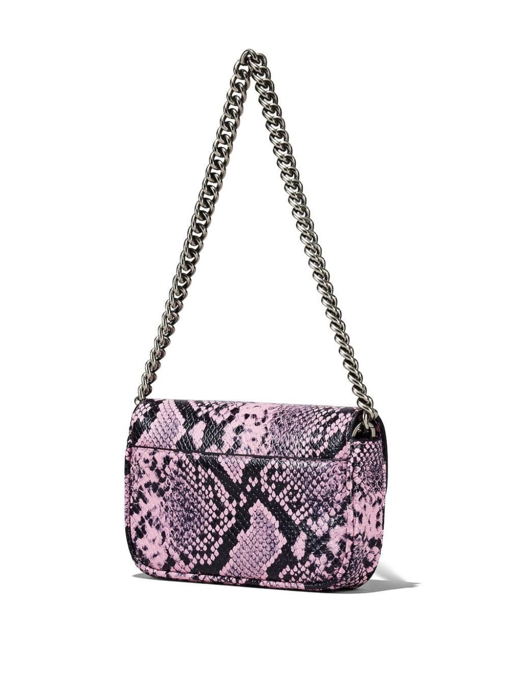 purple/black leather snakeskin effect silver-tone logo plaque two detachable leather and chain-link shoulder straps foldover top with magnetic fastening silver-tone hardware main compartment internal zip-fastening pocket internal card slots