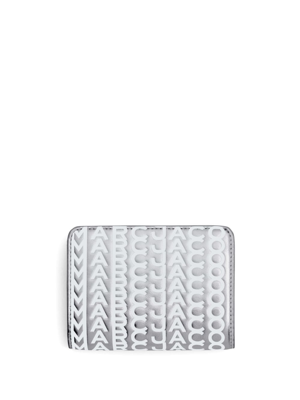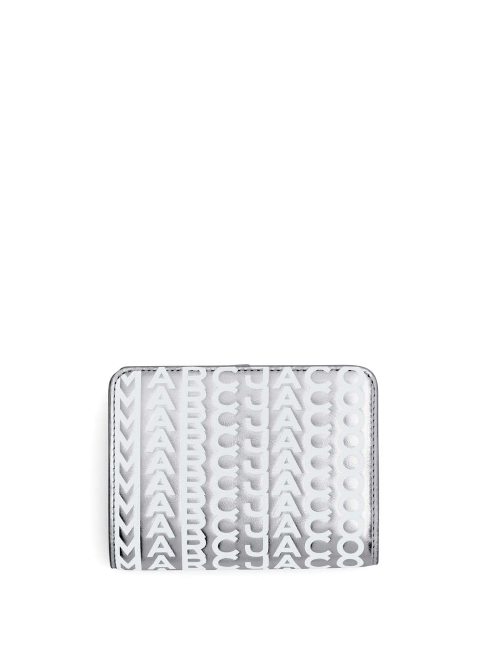 Marc Jacobs updates the Mini Compact wallet for AW23 with this silver-tone iteration, crafted from leather and emblazoned with a bold logo print all-over, lending an instantly recognisable finish.
