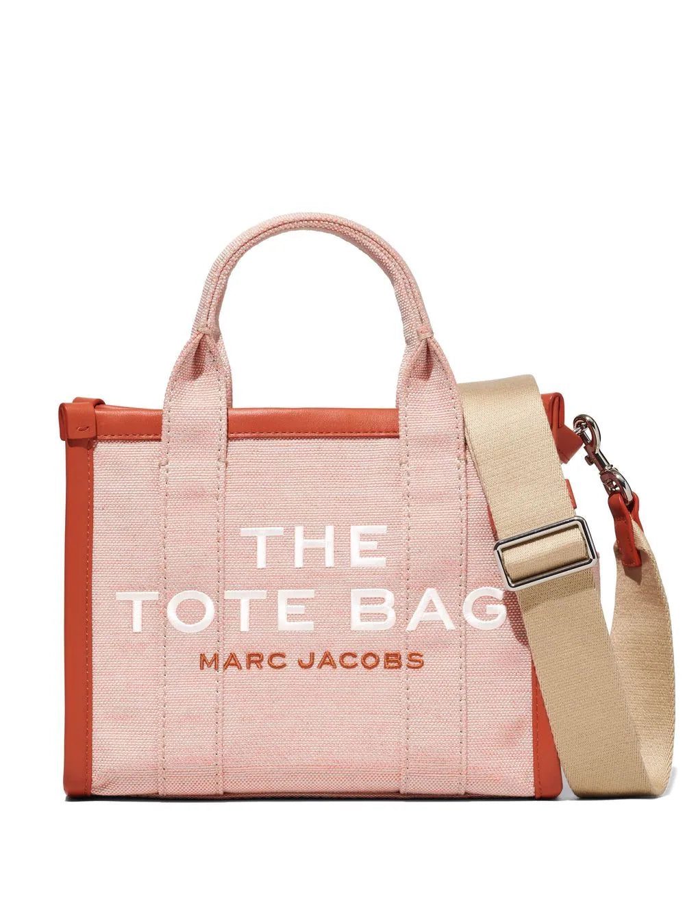Marc Jacobs' versatile and iconic tote bag is downsized into a mini version for SS22 and is presented in a neutral beige ánd red colourway. Featuring a detachable and adjustable shoulder strap, along with top handles, this accessory can be worn in several different ways.