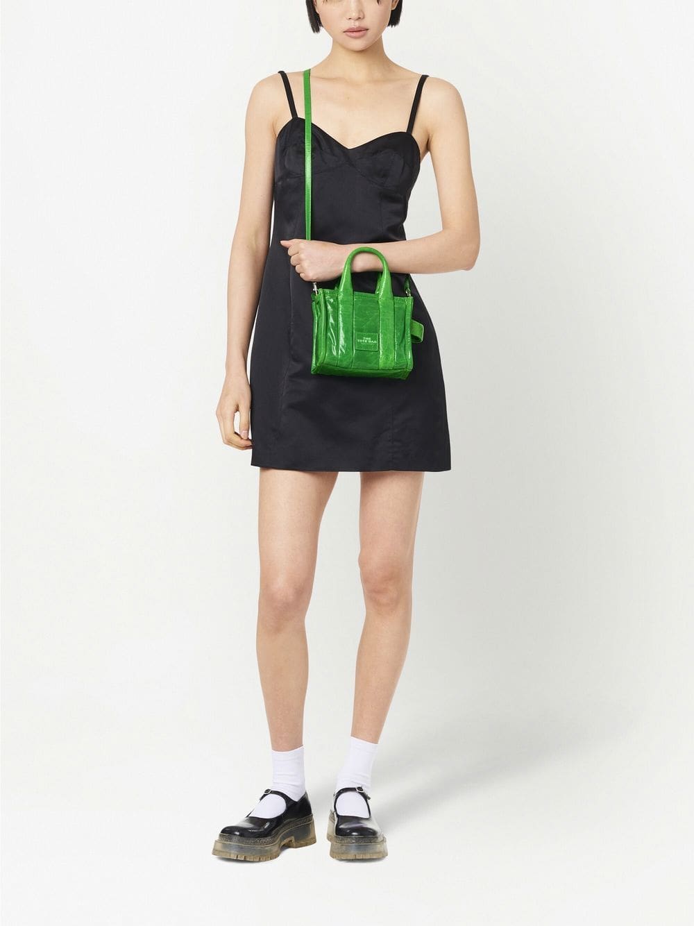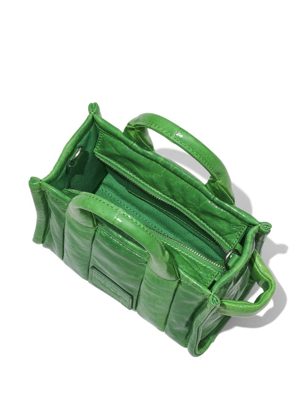 One of the brand's signature silhouettes, Marc Jacobs' The Tote Bag is constantly reinvented with new sizes, colourways and fabrications. It appears here in a vivid shade of green, made from crinkled leather with a shiny effect.