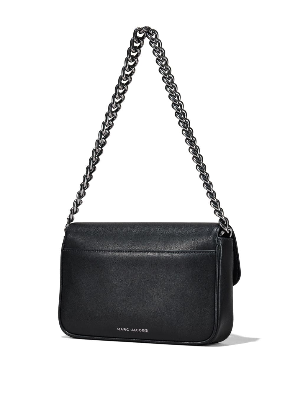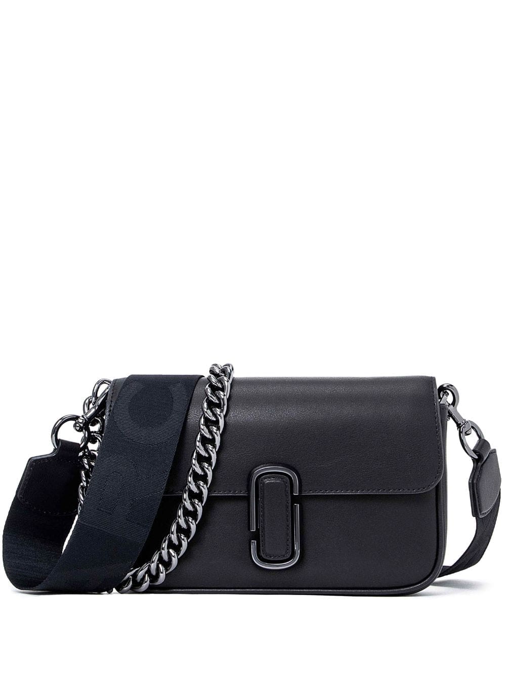 black leather chain-link shoulder strap silver-tone hardware logo print to the rear foldover top with magnetic fastening detachable shoulder strap internal zip-fastening pocket