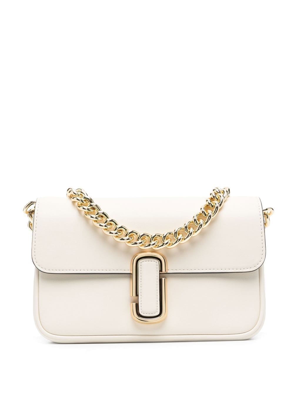 cloud white calf leather gold-tone logo lettering logo-print strap single chain-link top handle gold-tone hardware adjustable detachable shoulder strap foldover top with magnetic fastening slip pocket to the front main compartment internal logo patch internal zip-fastening pocket