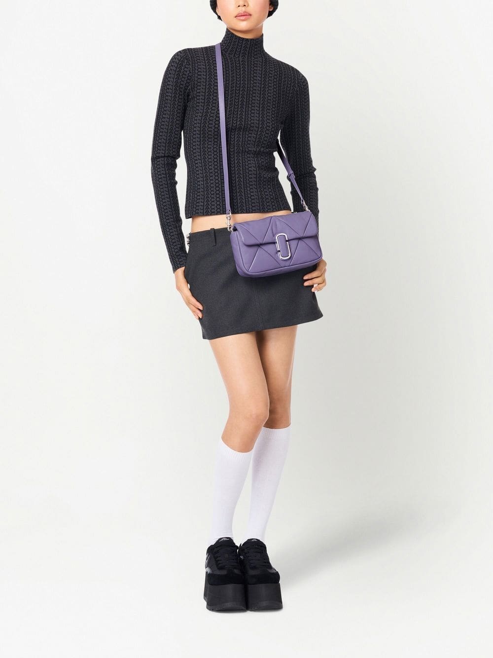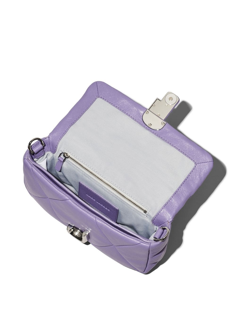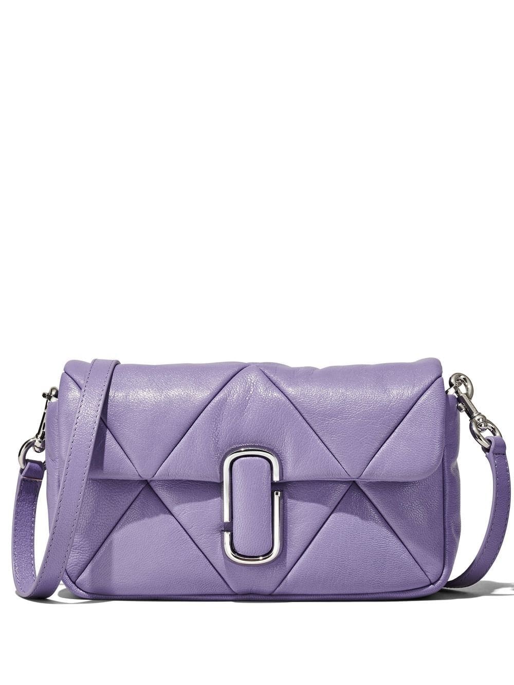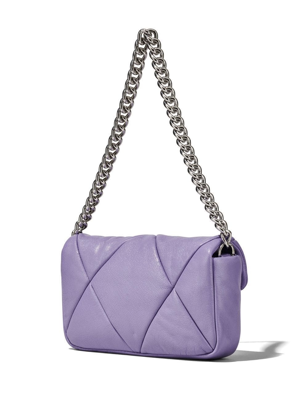 Marc Jacobs' iconic shoulder bag is reimagined for SS23 in a muted purple iteration defined by its puffy silhouette achieved by padded smooth leather quilted in a diamond-shaped pattern. Complete with polished silver-tone hardware, the accessory boasts a recognisable logo plaque at the centre.