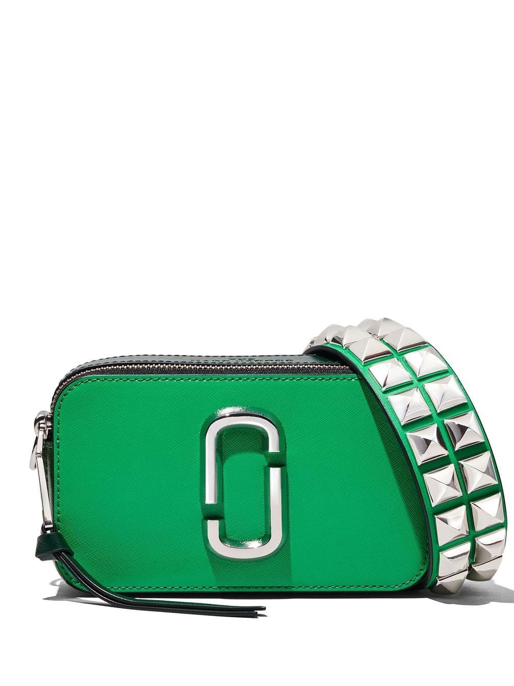 apple green faux leather logo plaque silver-tone hardware top zip fastening adjustable shoulder strap