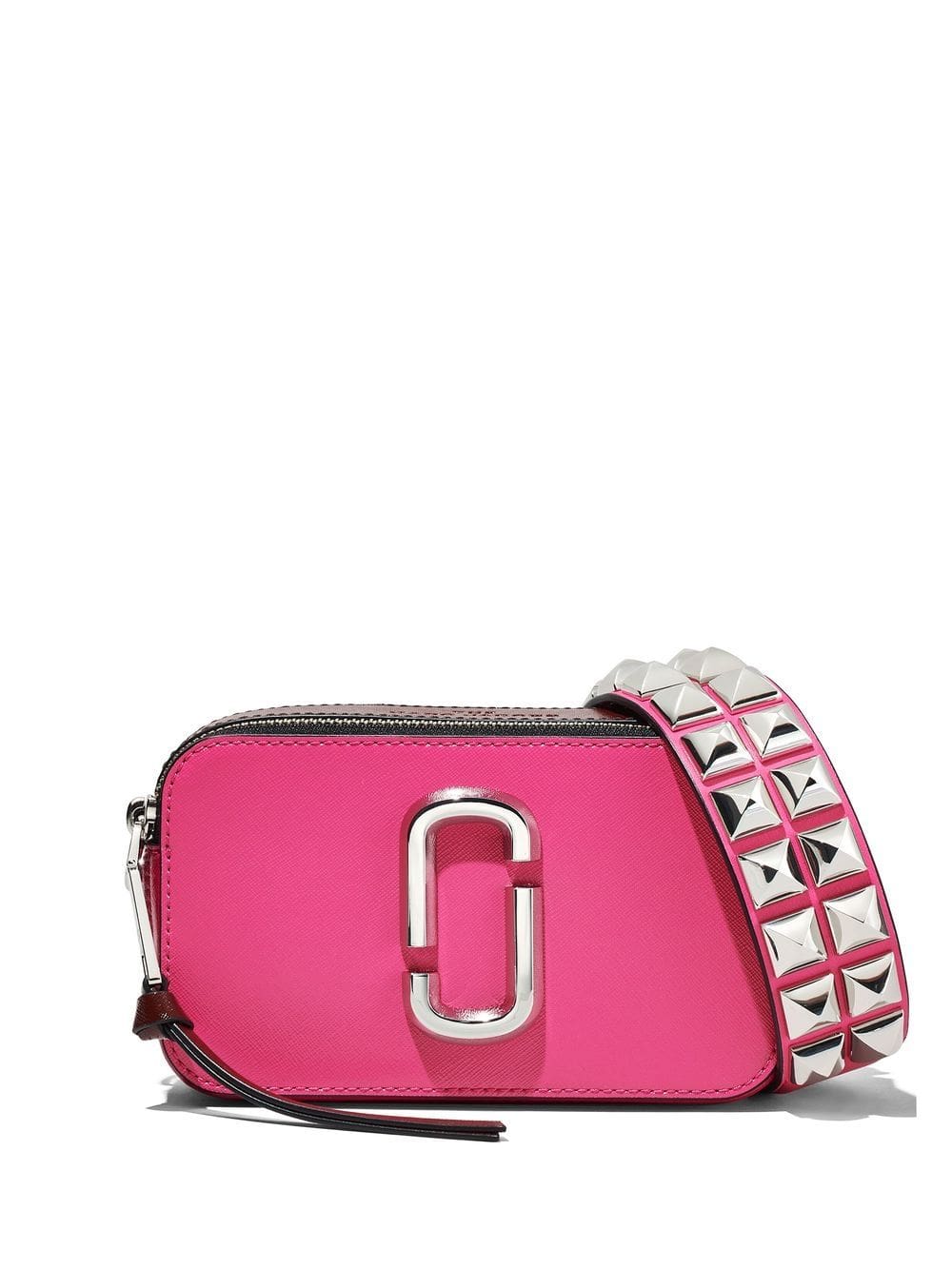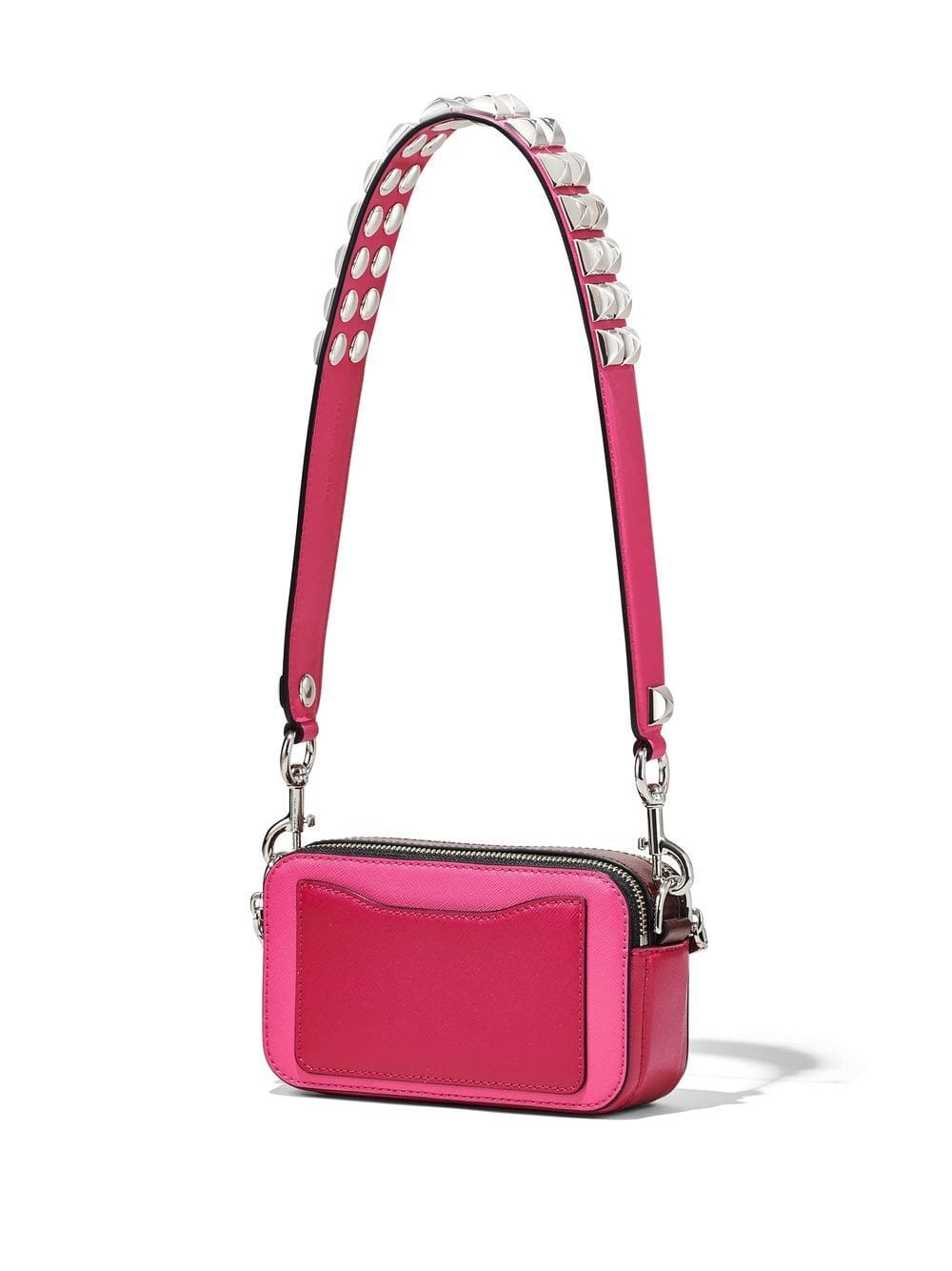 hot pink leather silver-tone hardware top zip fastening studded detachable shoulder strap internal slip pocket slip pocket to the rear