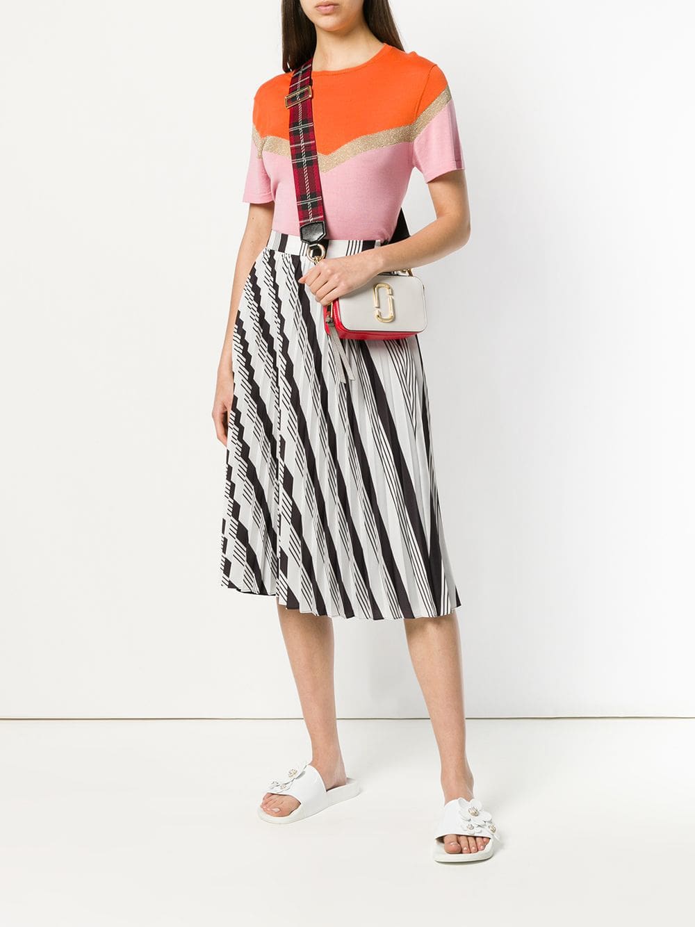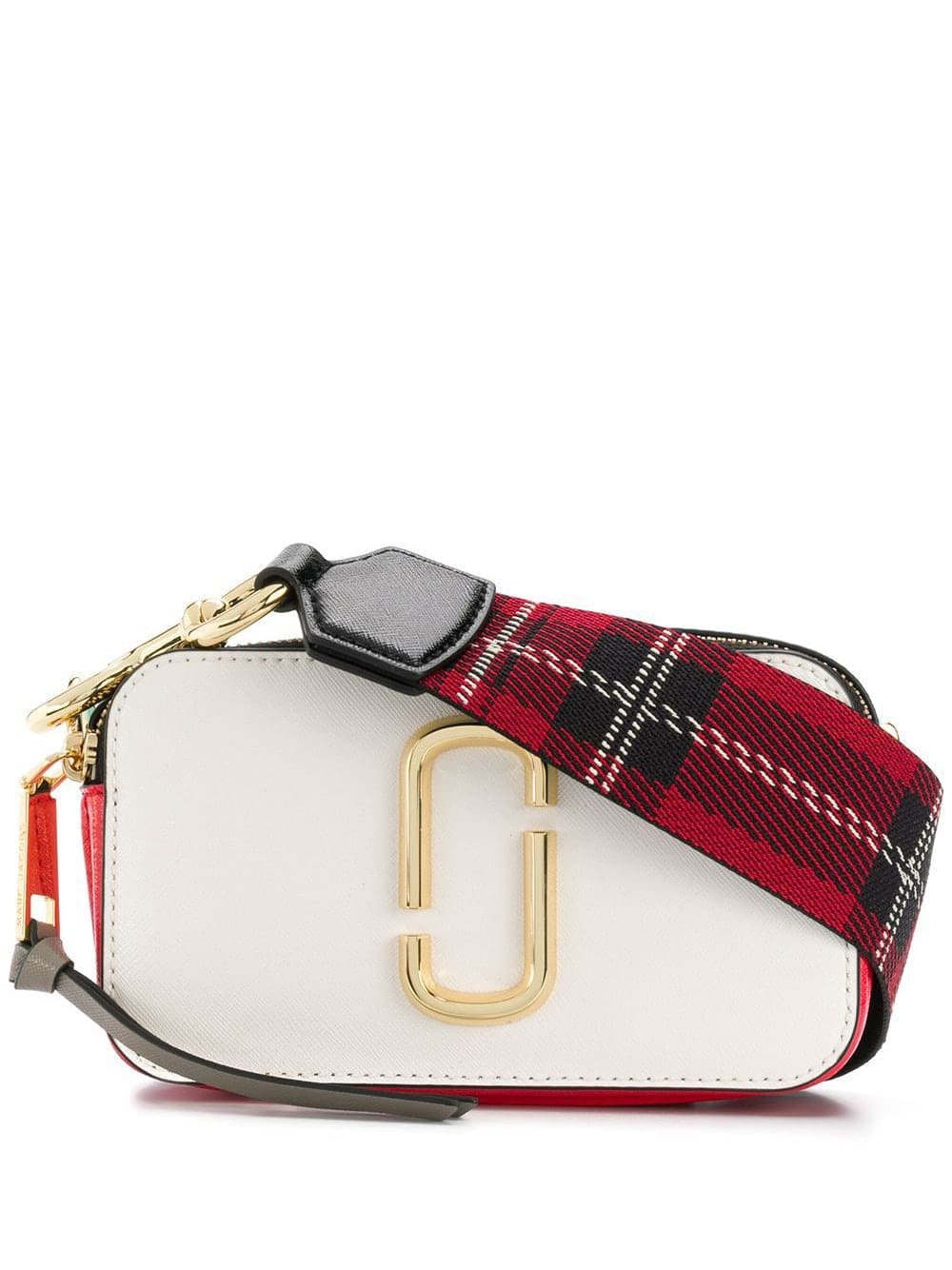 Founded in 1984, Marc Jacobs is one of the most influential designers of our time. Unexpected and always pushing boundaries, expect to see pieces and accessories infused with an irreverent approach, wearability and personality. This white and red multi calfskin leather The Snapshot crossbody bag from Marc Jacobs features a detachable and adjustable shoulder strap, a double top zip closure, gold-tone hardware, multiple interior compartments, an open front pocket and an internal logo patch.