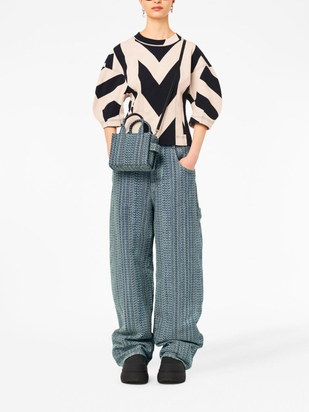 An ode to logomania, Marc Jacobs' Tote Bag is decorated with a logo-jacquard effect. The detachable strap allows for wearing it cross-body.
